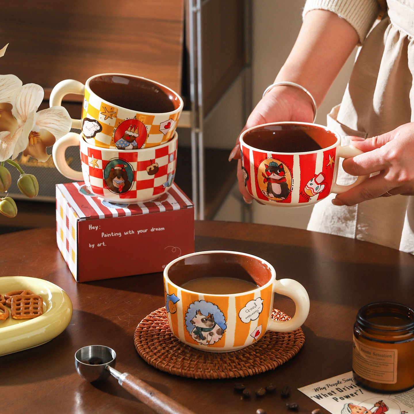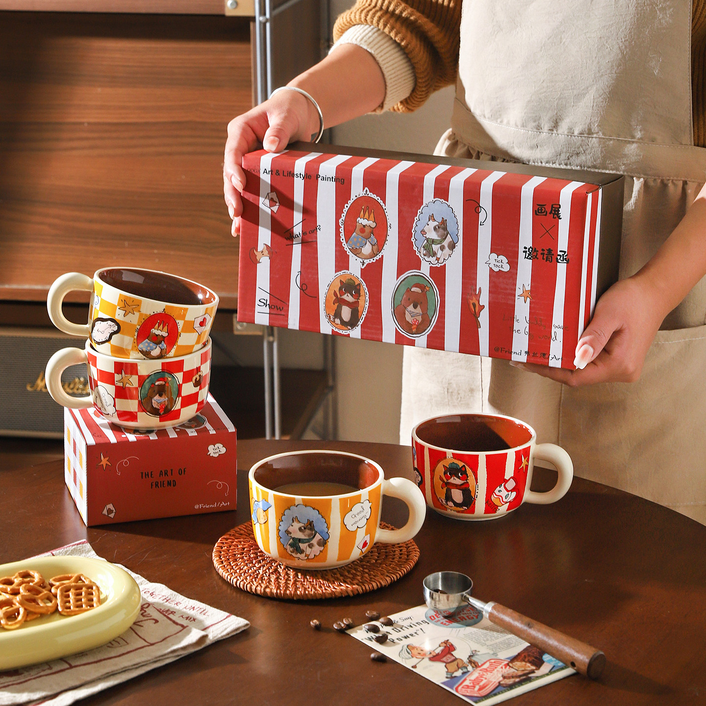 舍里卡通陶瓷马克杯套装高颜值咖啡杯礼盒装可爱家用办公室喝水杯