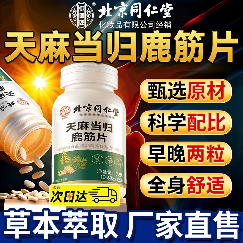 北京同仁堂朕皇天麻当归鹿筋片中老年正品旗舰店护软骨手脚麻木XT