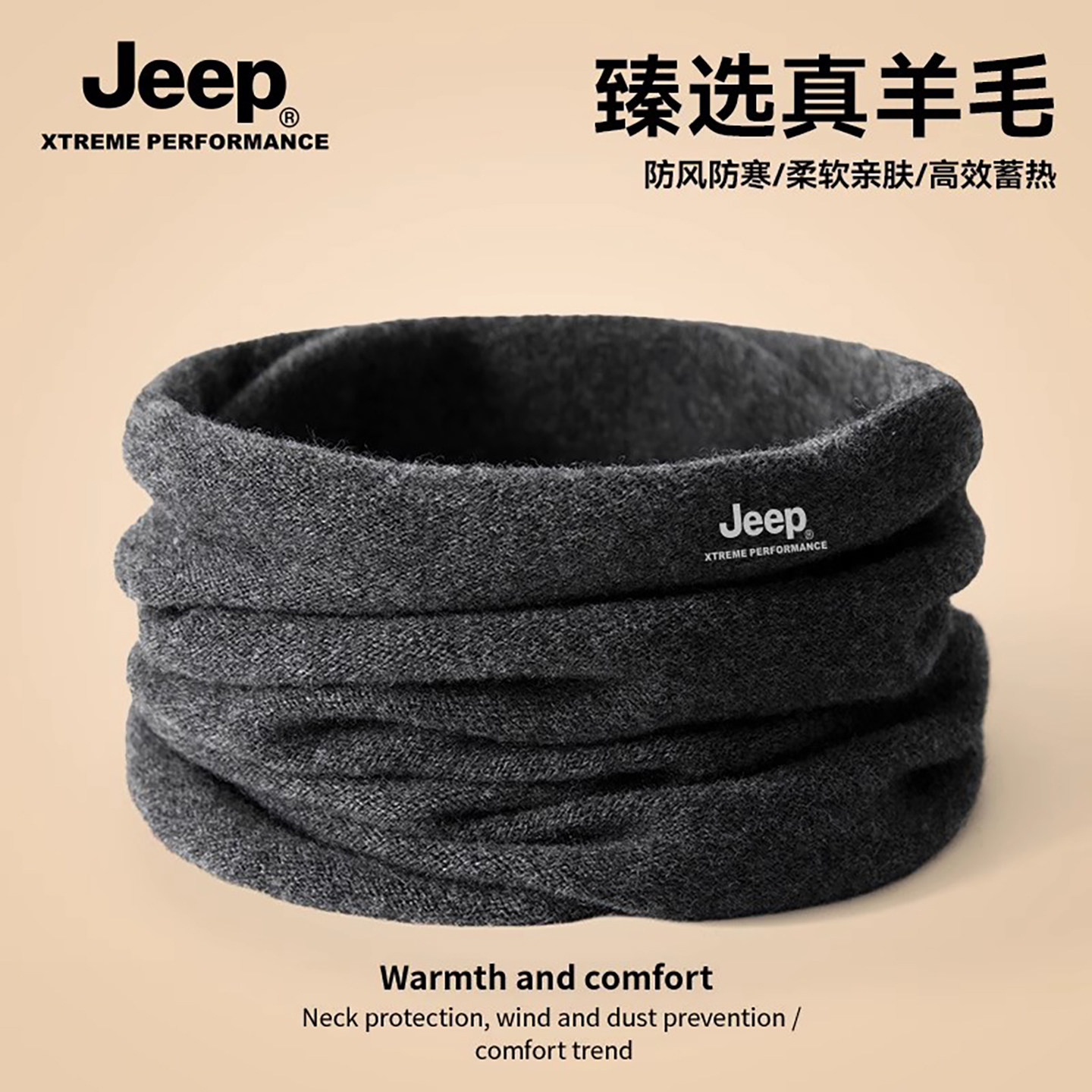 jeep吉普护颈脖套男士羊毛混纺围脖保暖围巾男款加绒防风骑车面罩