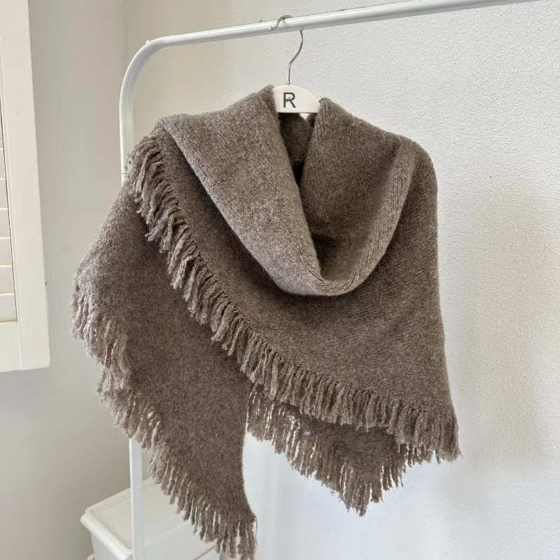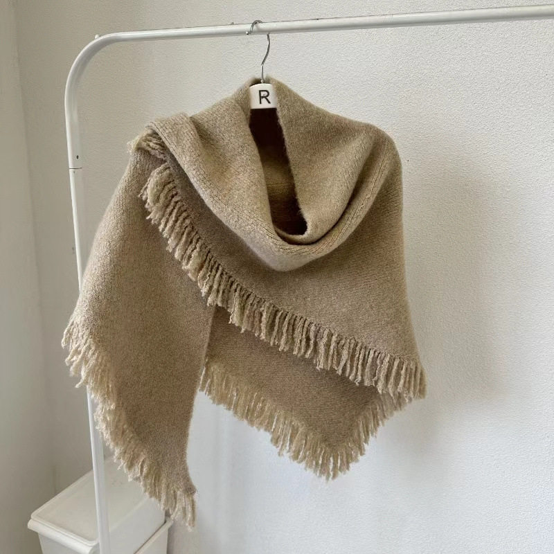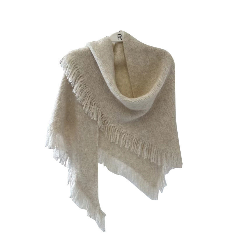 羊毛披肩女流苏开衫秋冬新款女外搭外套围巾斗篷灰色米色白色蓝色