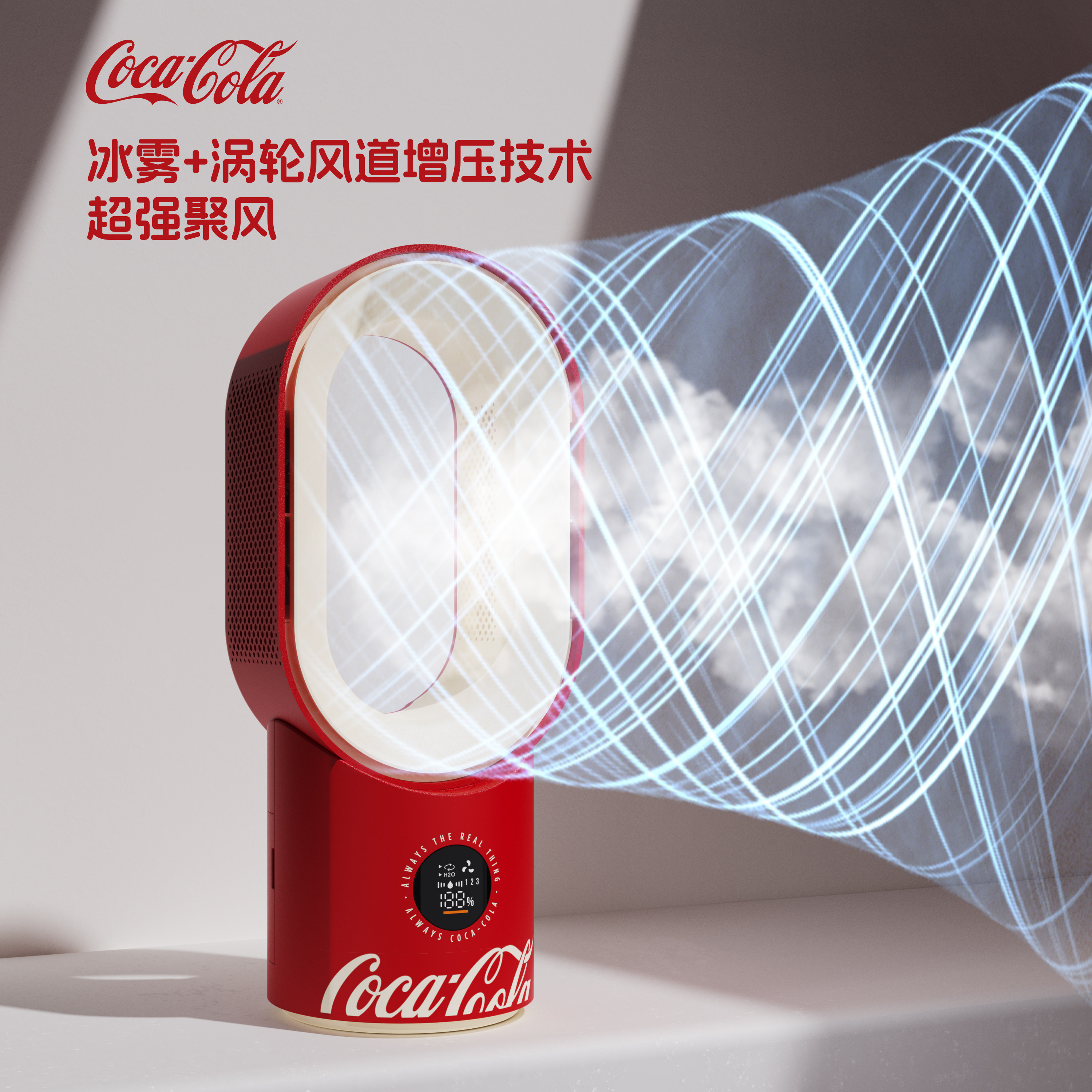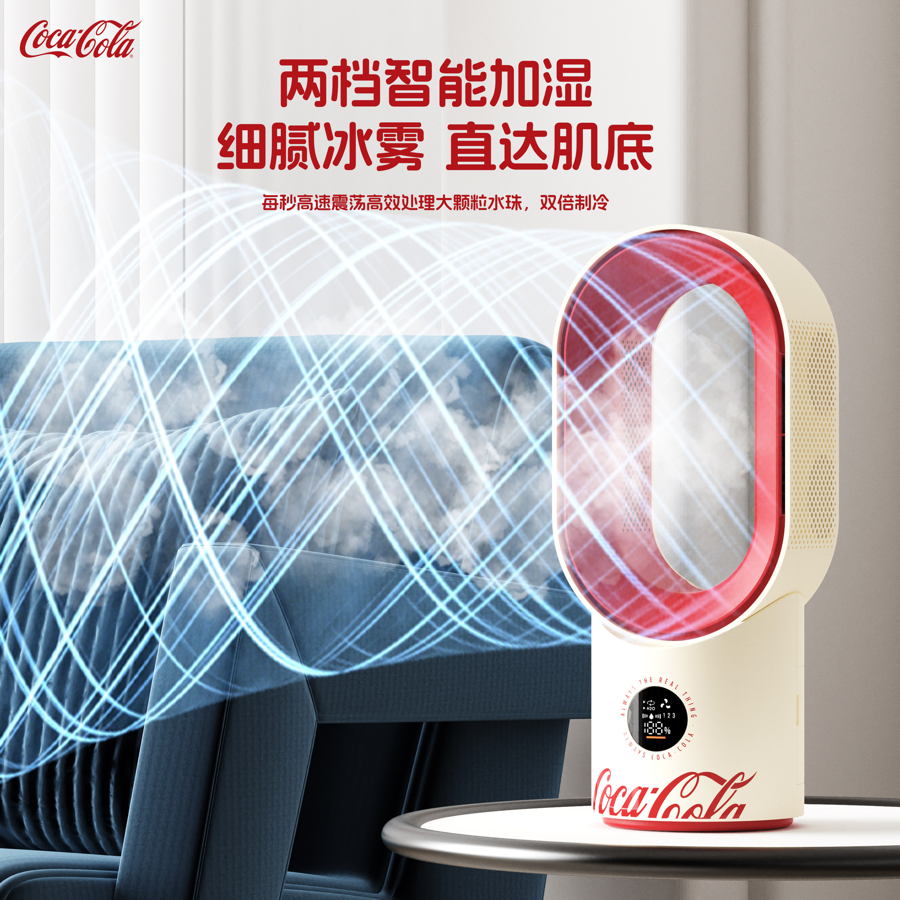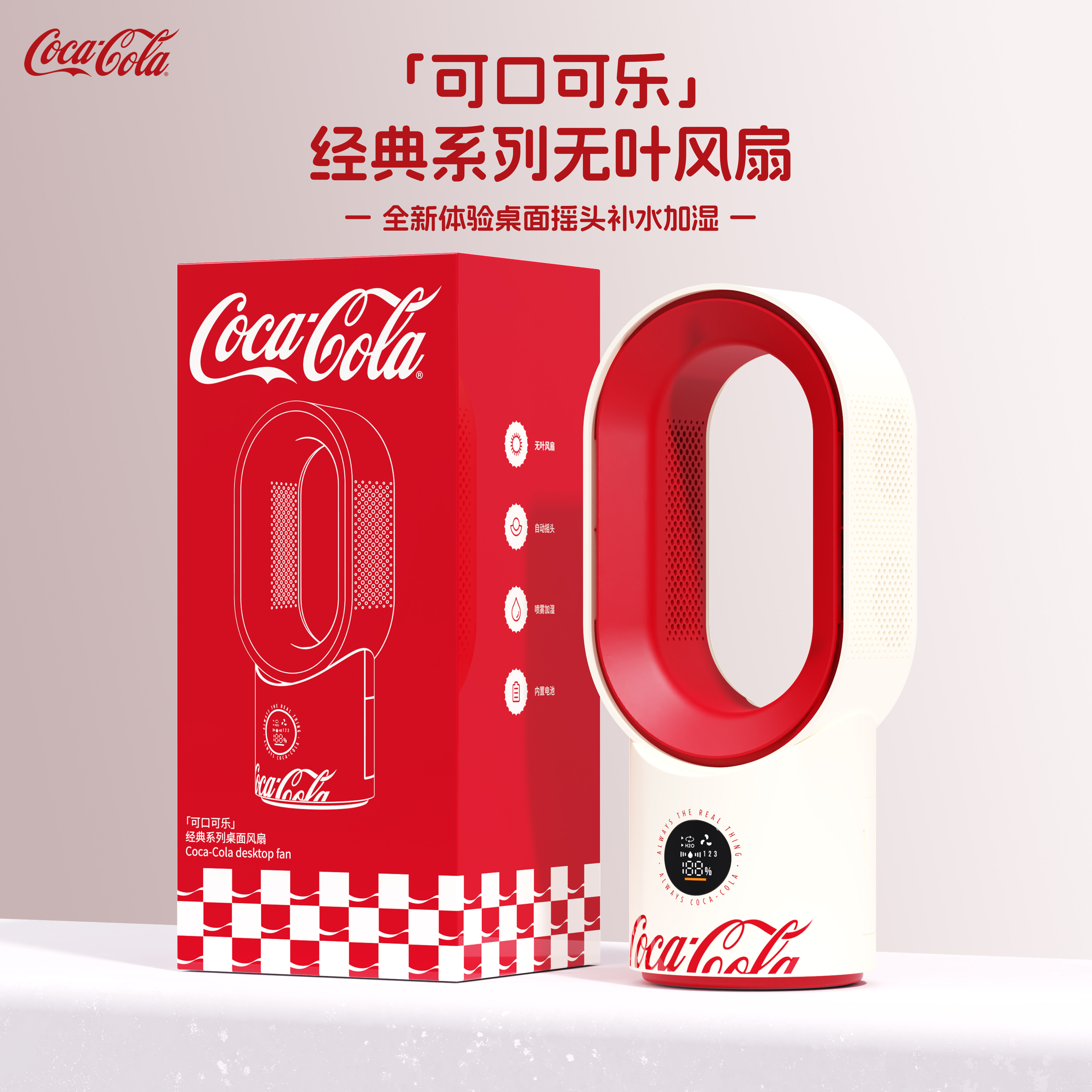 可口可乐联名台式无叶喷雾风扇小型静音家用办公室桌面usb充电学生宿舍加湿制冷摇头降温强力电风扇2026新款