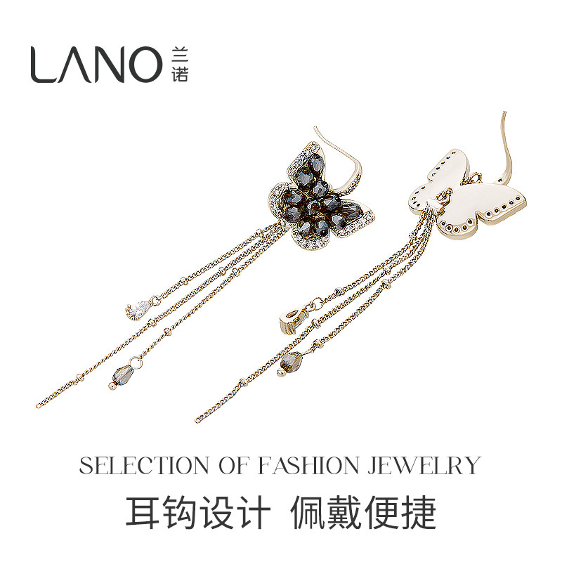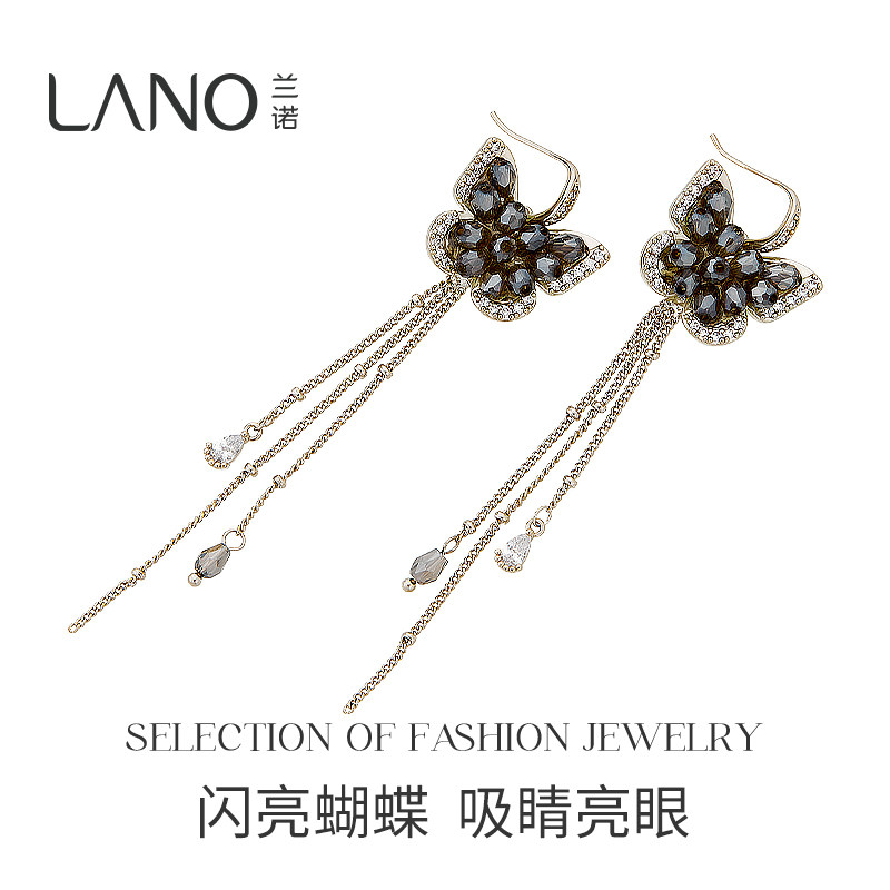 兰诺蝴蝶流苏耳环女2025新款爆款轻奢高级感女人味圆脸的耳饰气质
