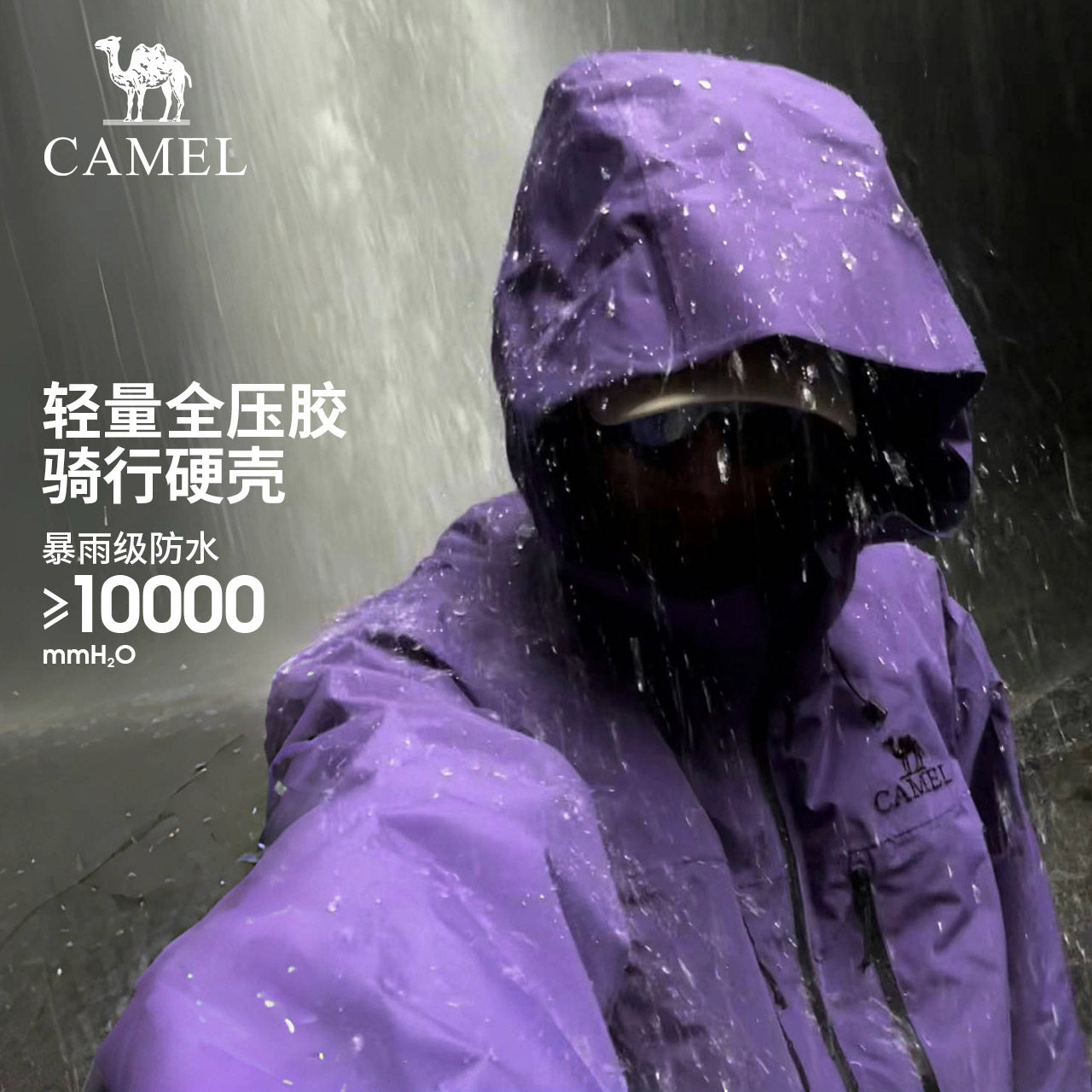 骆驼雨神冲锋衣男女户外专业硬壳防水紫色登山服越野骑行运动服