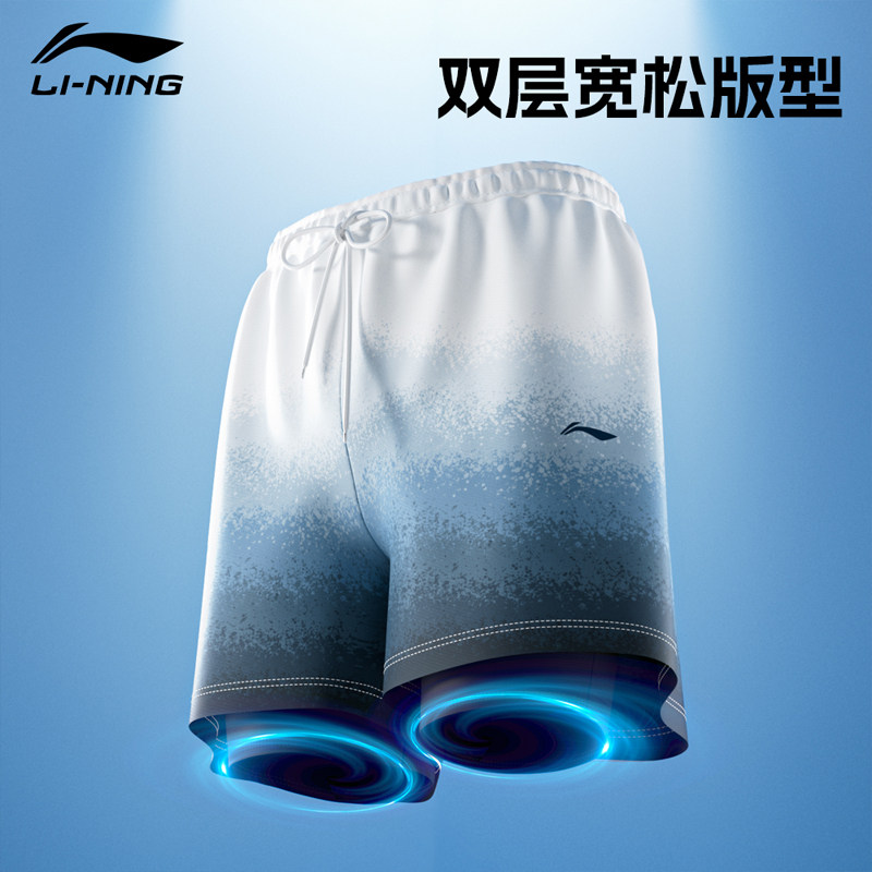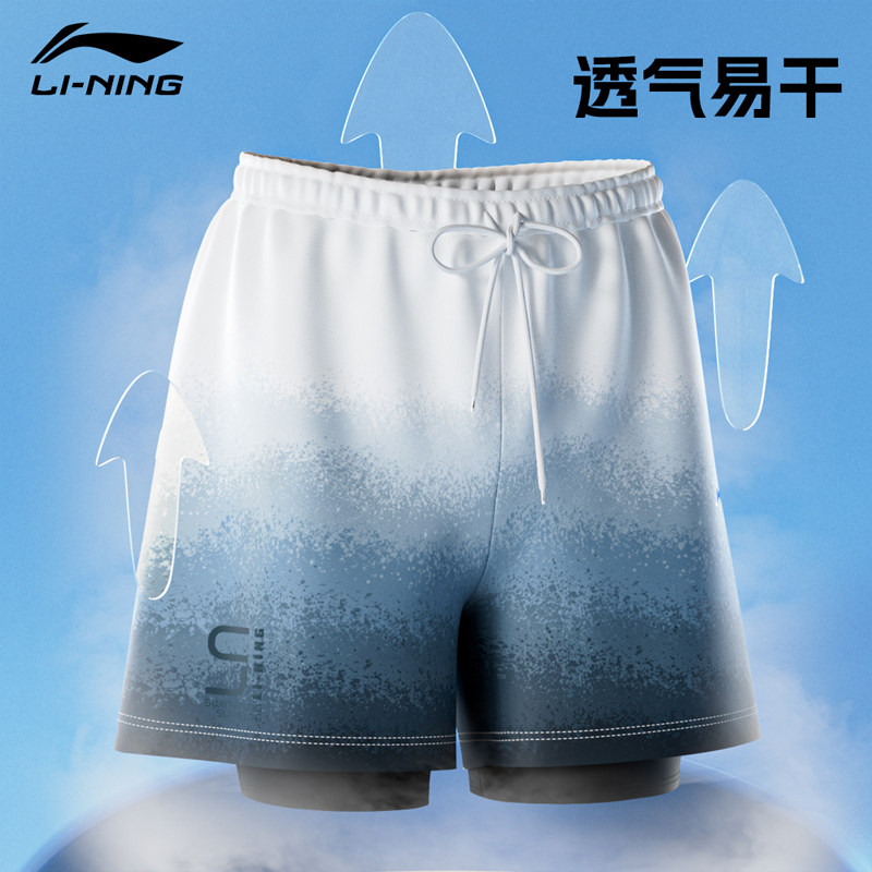 李宁泳裤男士五分双层速干防尴尬专业游泳裤泡温泉度假成人沙滩