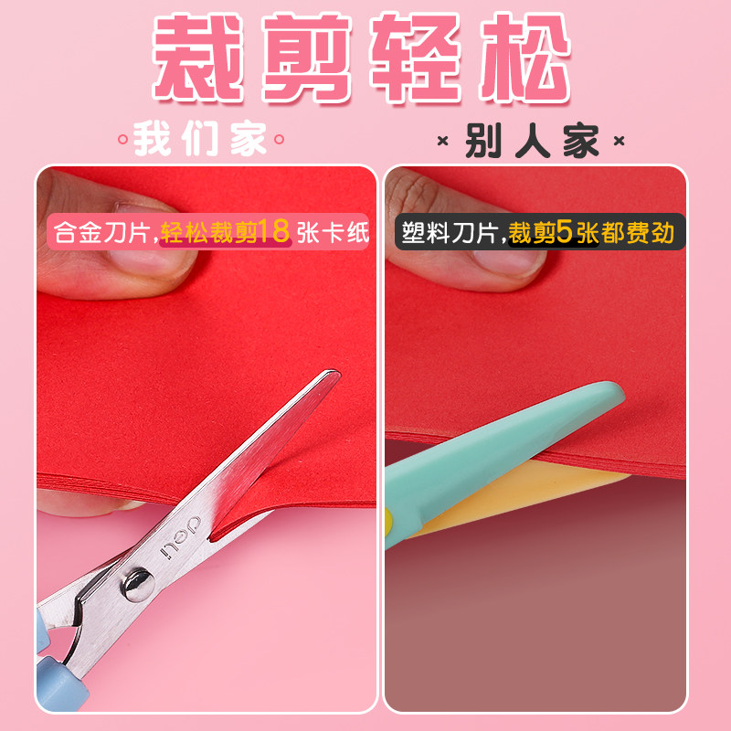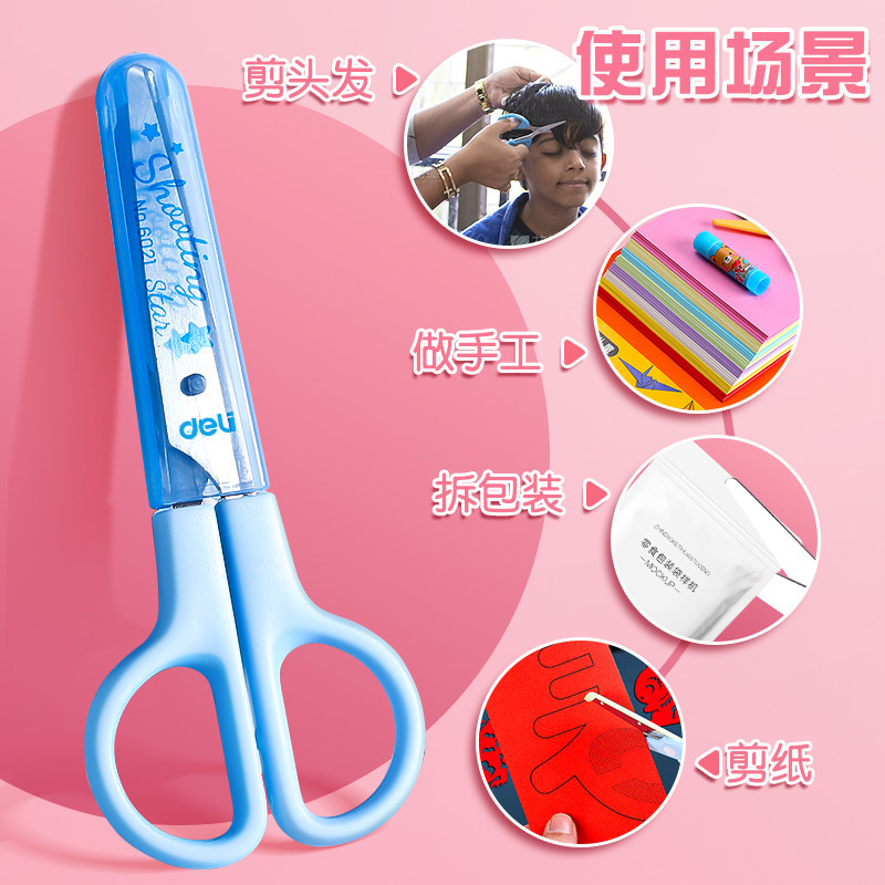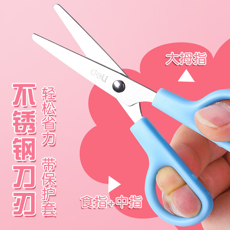 得力剪刀学生儿童用美术美工剪刀圆头保护盖可爱幼儿园不伤手安全手工DIY工具卡通学习用品益智裁剪剪纸用品