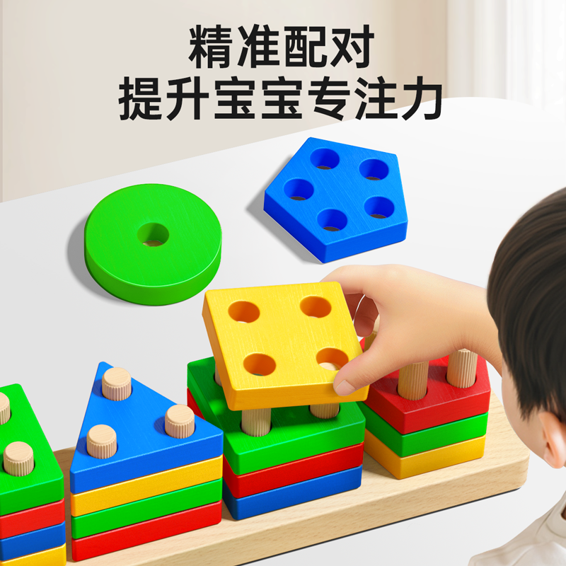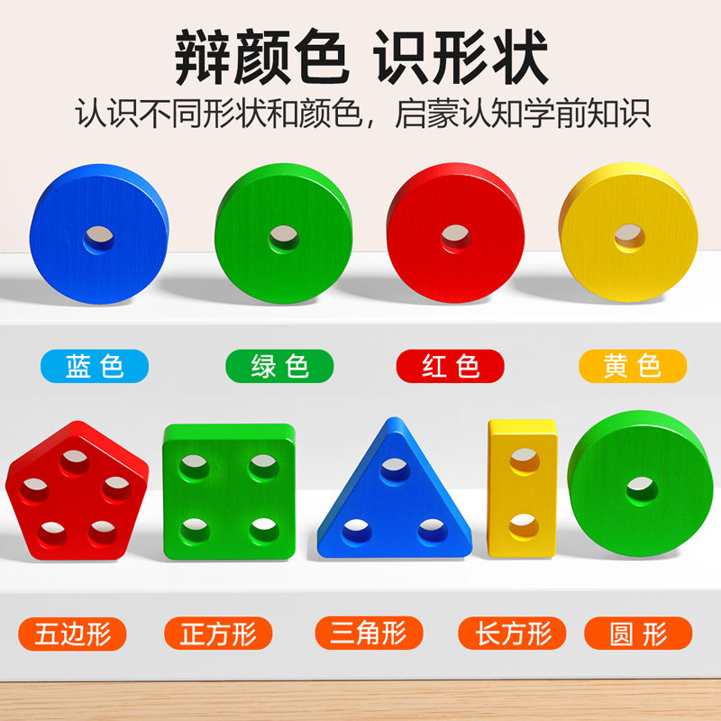 蒙氏几何套柱积木益智拼装玩具宝宝0到3岁的思维训练儿童开发早教