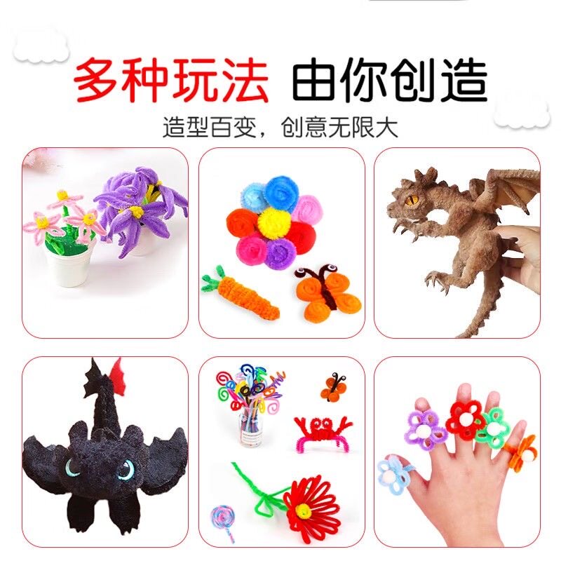 100根混装扭扭棒手工制作毛绒条儿童创意DIY挂件网红材料包马卡龙