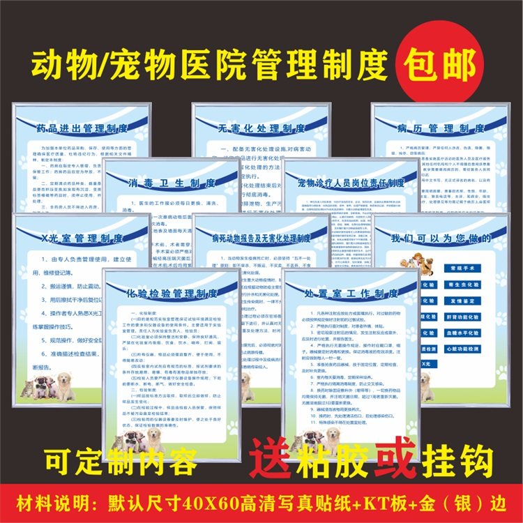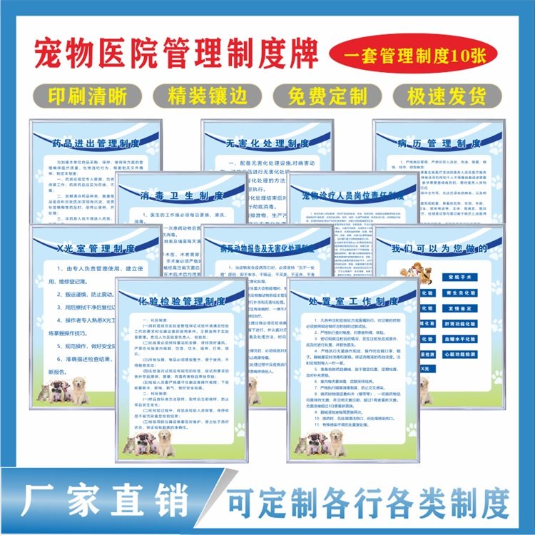 动物宠物医院诊所门诊规章制度海报挂图动物诊所服务制度标识牌