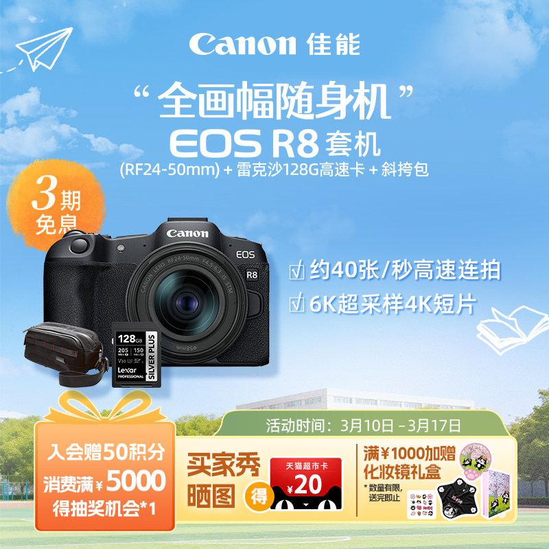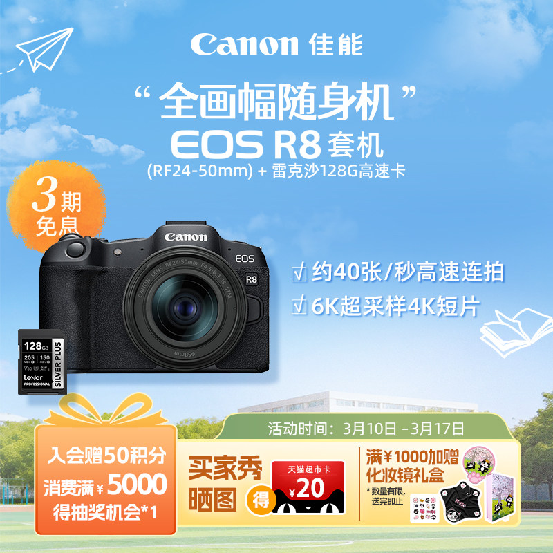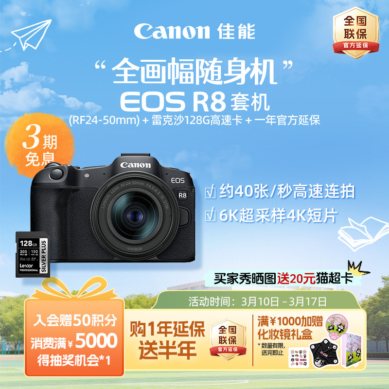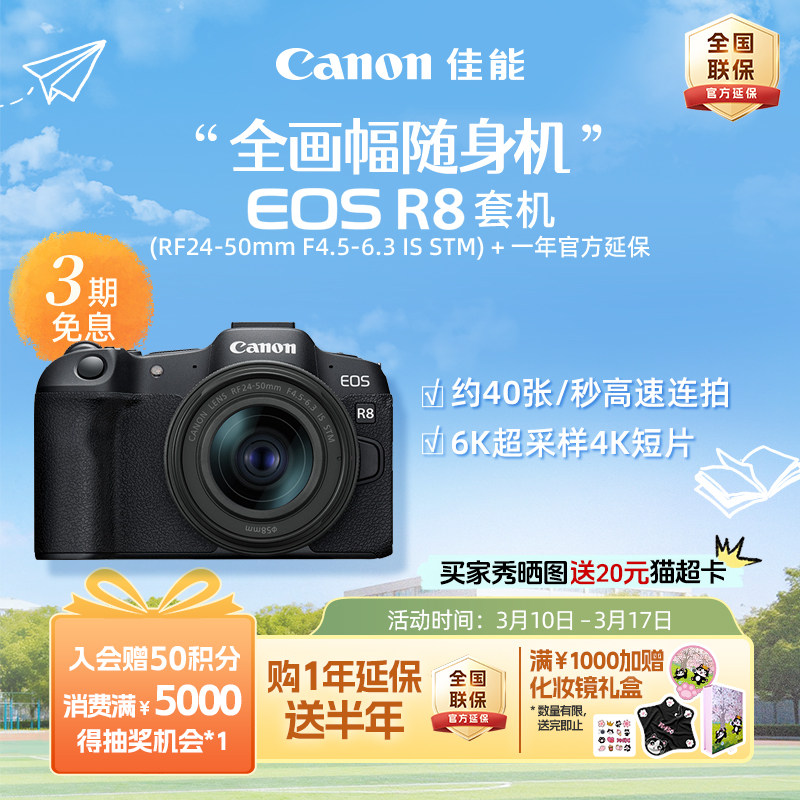 [旗舰店]Canon/佳能EOS R8机身/套机 全画幅专业微单高速连拍相机