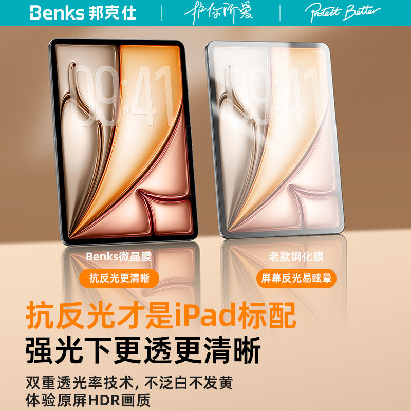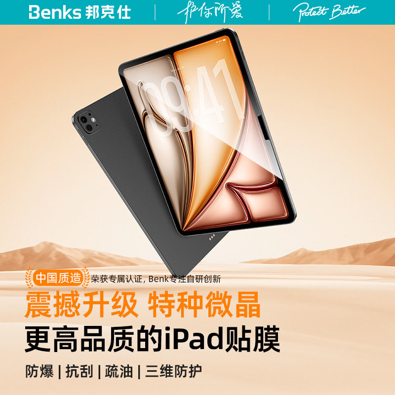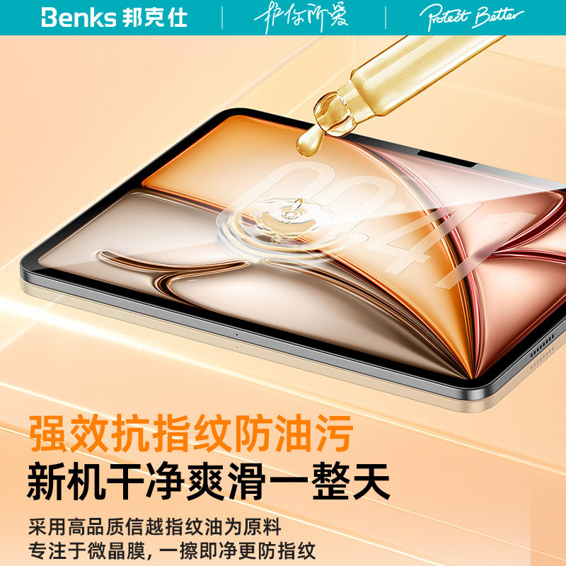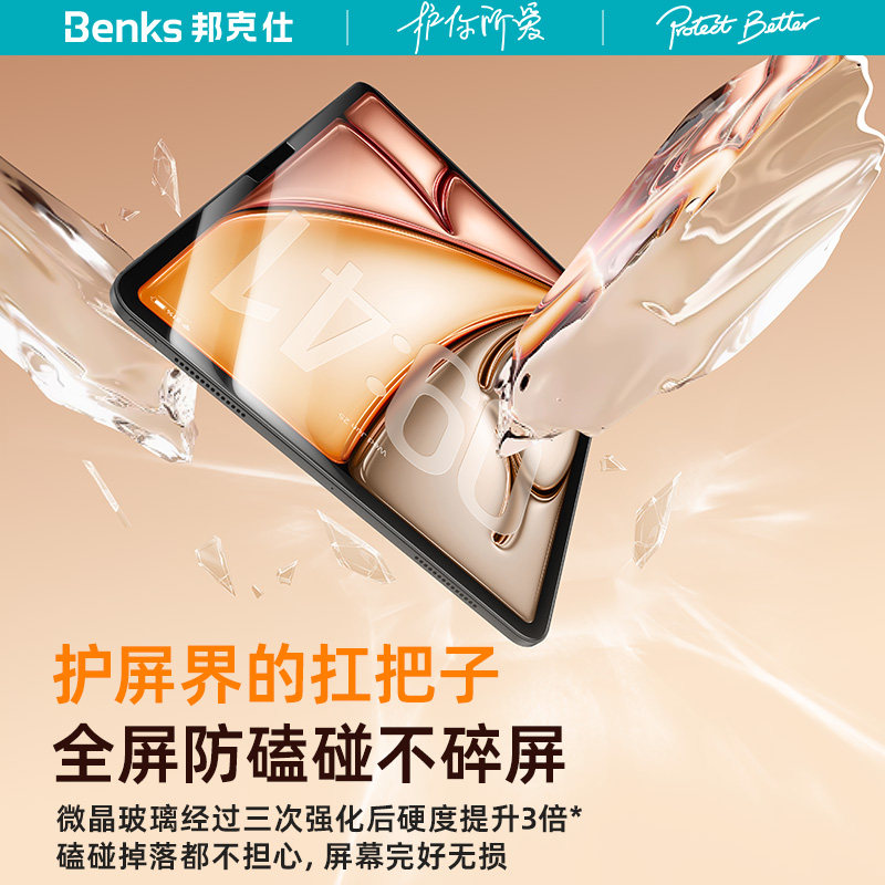 Benks适用iPadAir7钢化膜Mini7苹果2025新款第11代Pro平板ar5保护贴膜3防指纹2022十10九9全屏a16幕8高清13寸