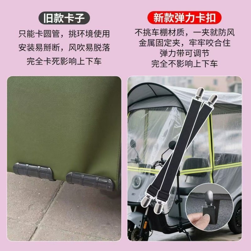 三轮车棚固定神器电动车挡风帘固定夹车棚雨帘拉钩松紧绷带固定夹
