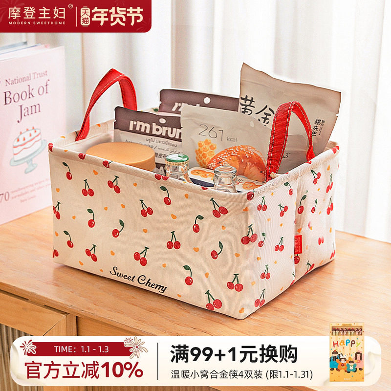 摩登主妇樱桃收纳筐布艺桌面收纳盒化妆品零食杂物多功能储物神器