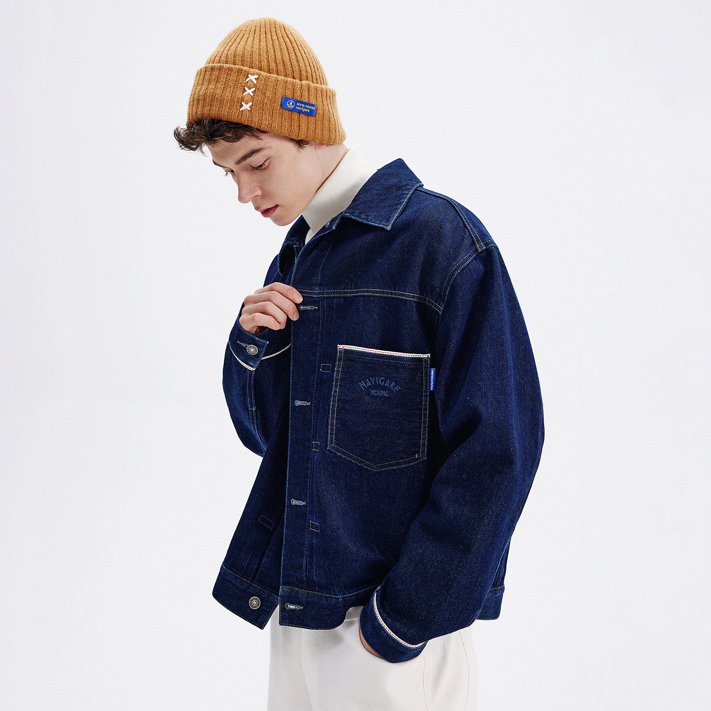 NAVIGARE意大利小帆船水洗牛仔夹克男25秋季新款翻领工装茄克外套
