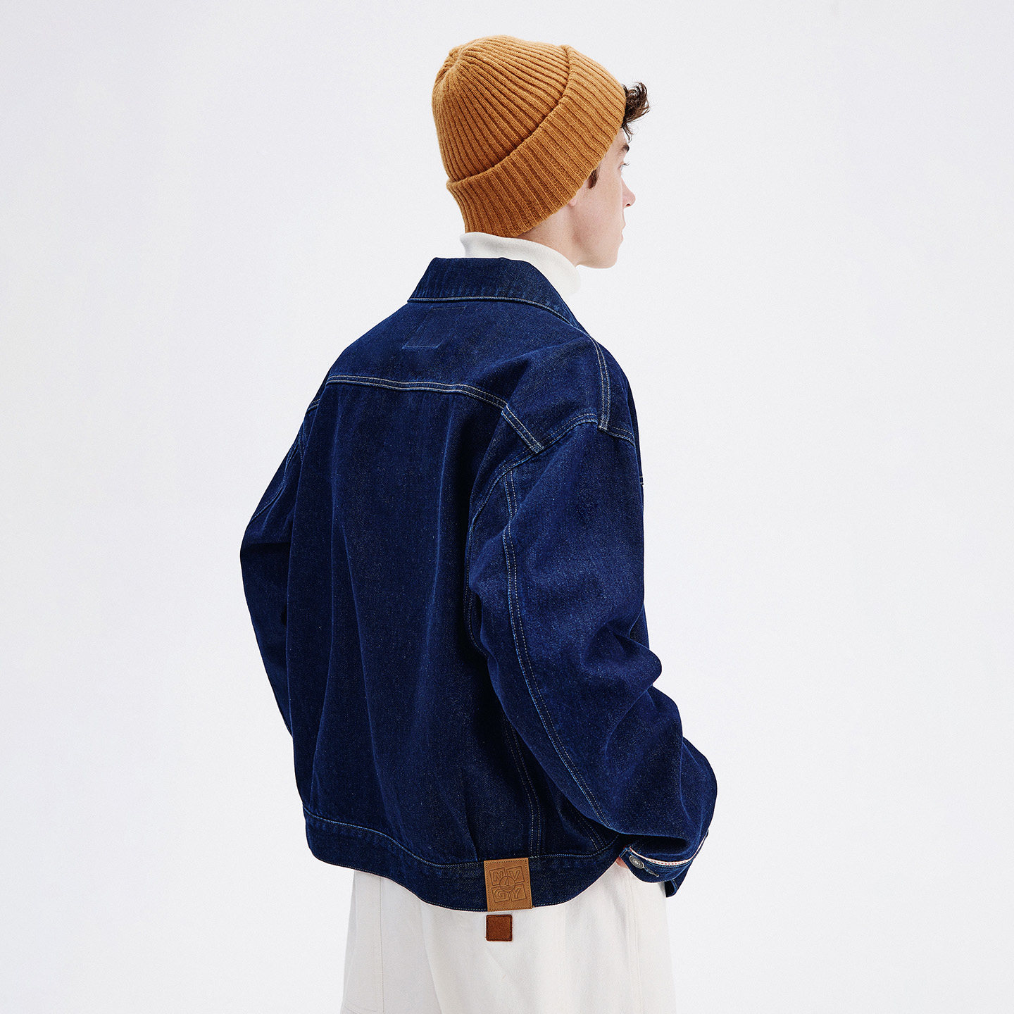 查尔斯桃心 美式复古刺绣牛仔外套男春秋季新款翻领百搭痞帅夹克