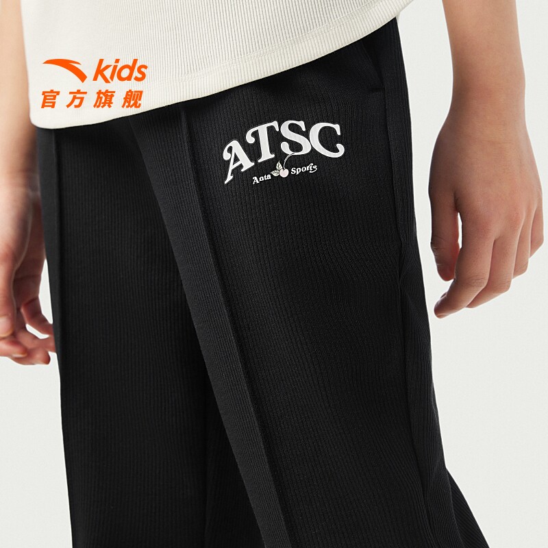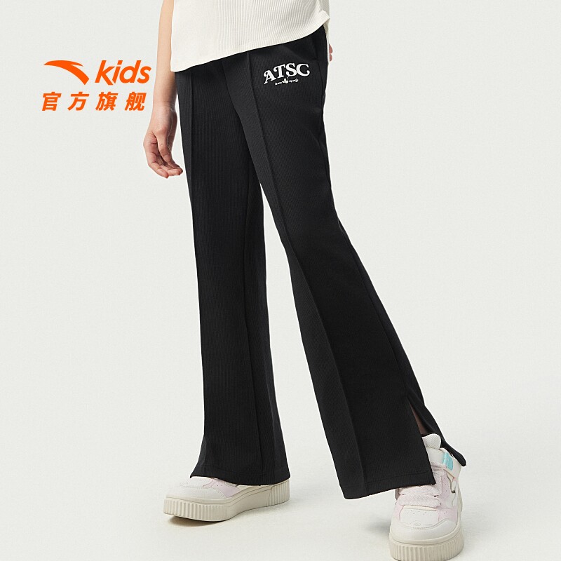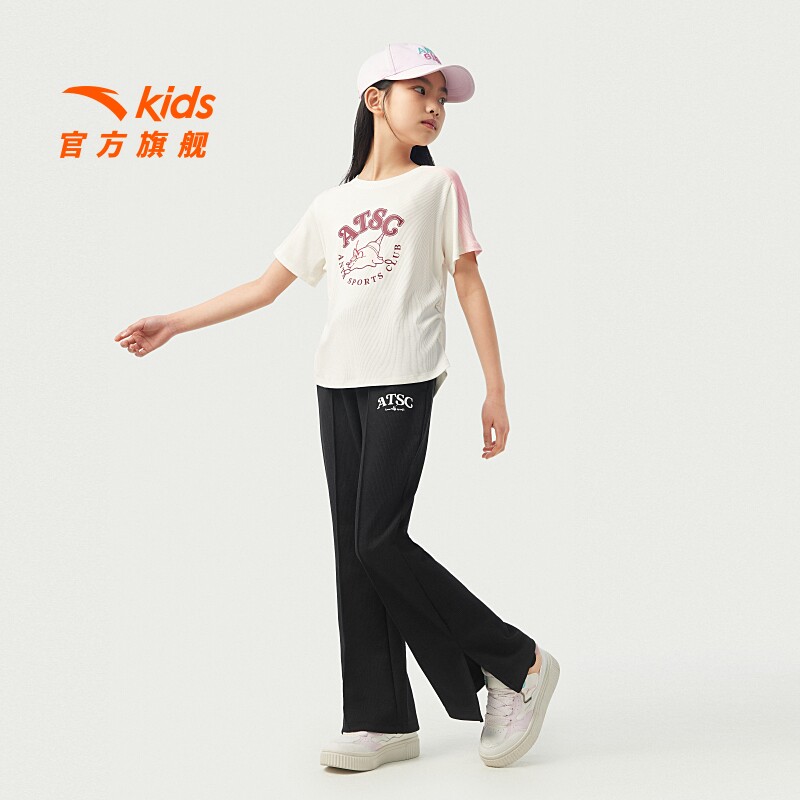 安踏儿童女大童针织运动长裤2025夏透气亲肤中大童微喇休闲裤