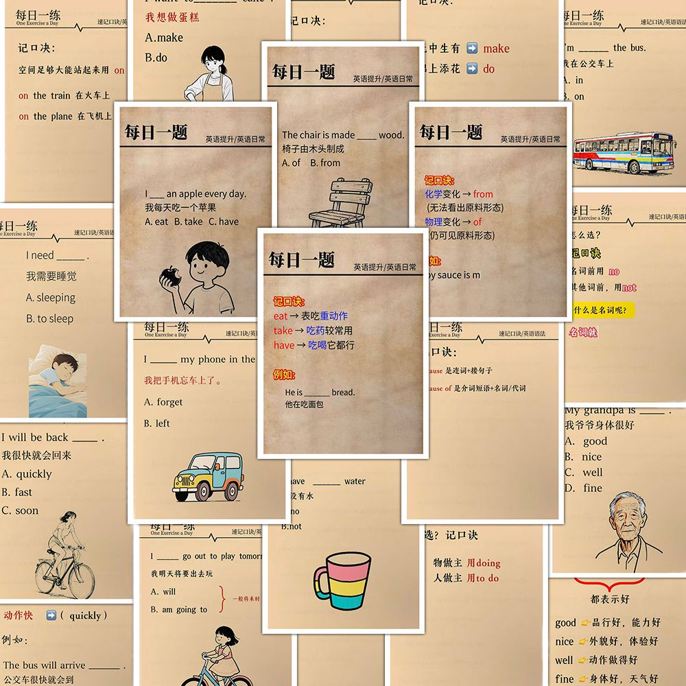 重点】英语语法每日一练贴纸语法口诀轻松记提升英语水平贴画实用