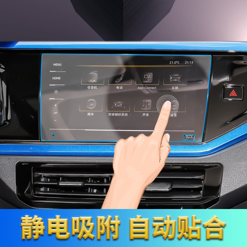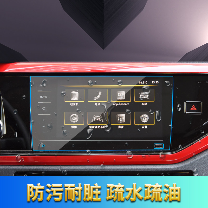 适用21款大众POLOplus导航钢化膜中控台显示屏幕保护贴膜汽车改装