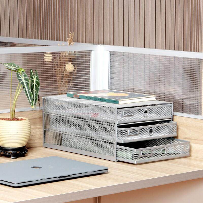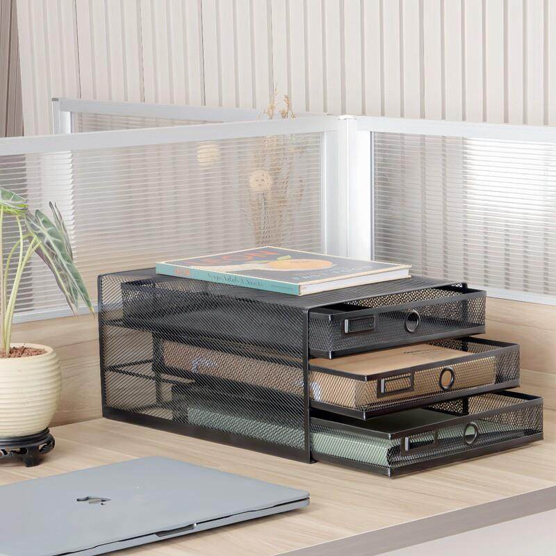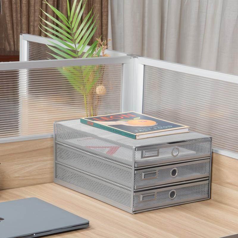 桌面文件网格收纳架办公带抽屉考卷资料整理柜金属档案分类书本框