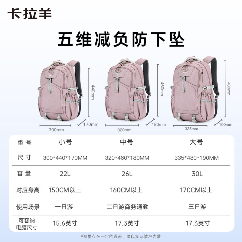 【旅行包电脑包】卡拉羊旅行户外运动减负双肩包轻便大容量防水登山包旅游徒步背包中学生大学生成人考拉包