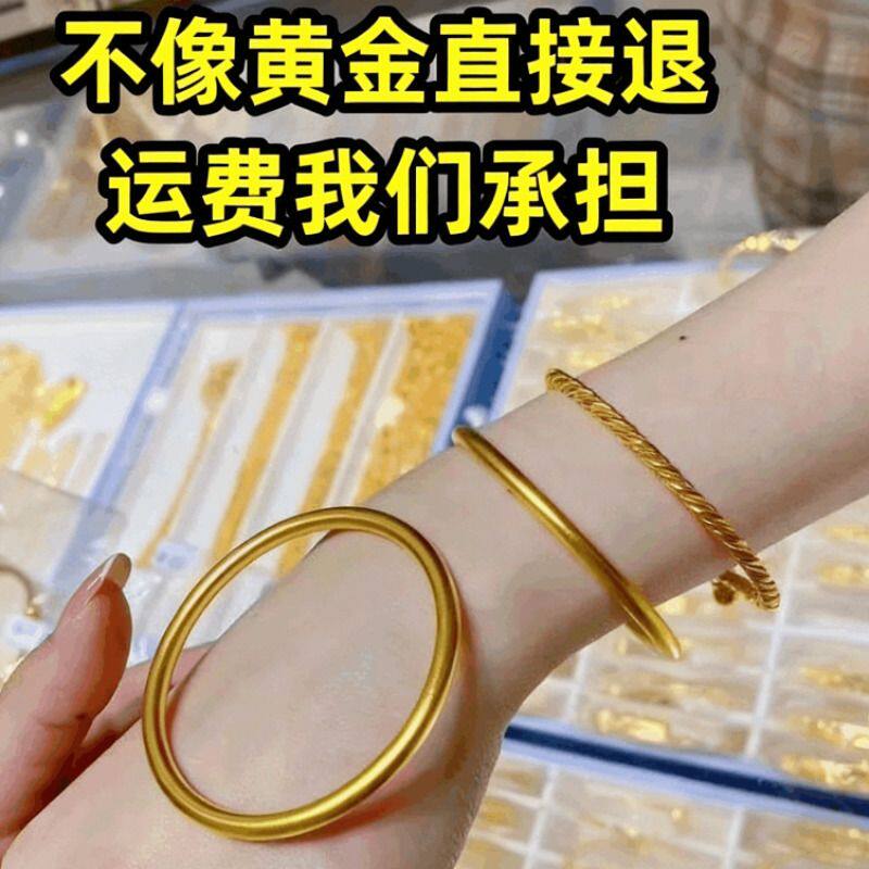 古法传承手镯女仿真黄金正品实心越南沙金素圈不掉色首饰合金