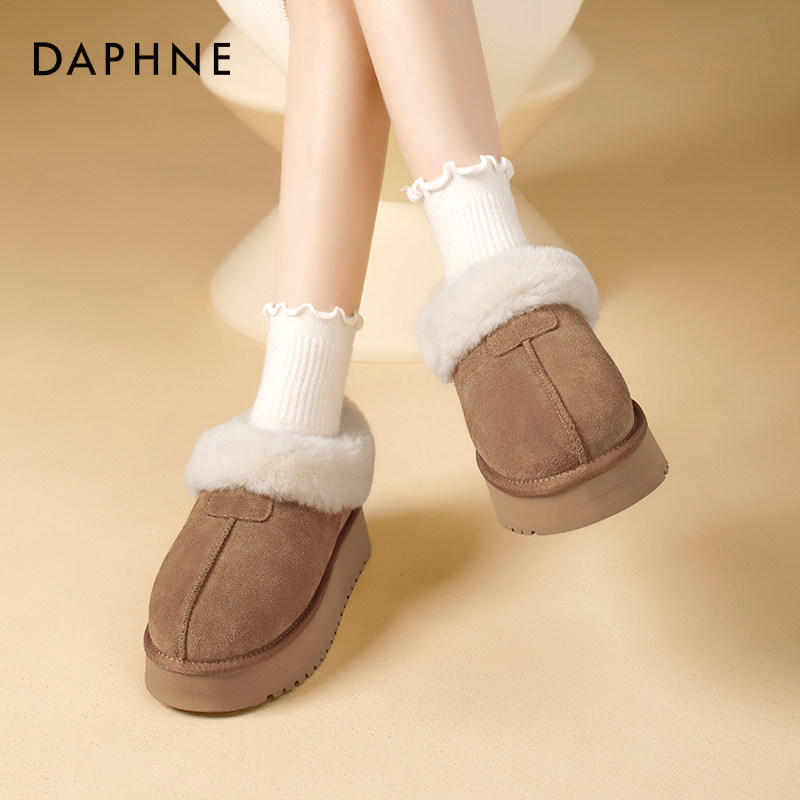 达芙妮厚底雪地靴女低帮2025新款真皮东北棉鞋秋冬季保暖加绒加厚