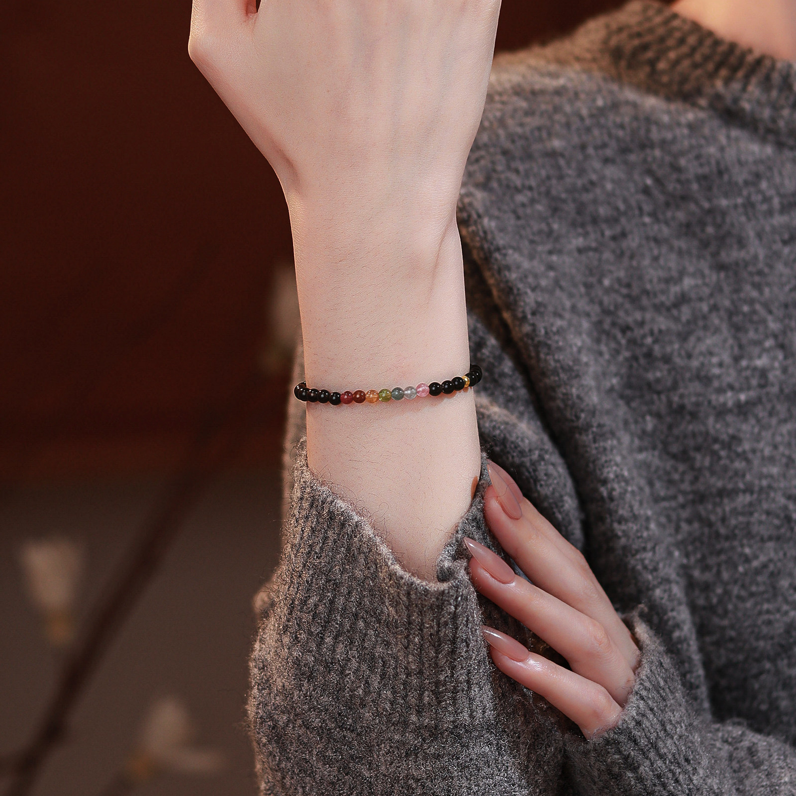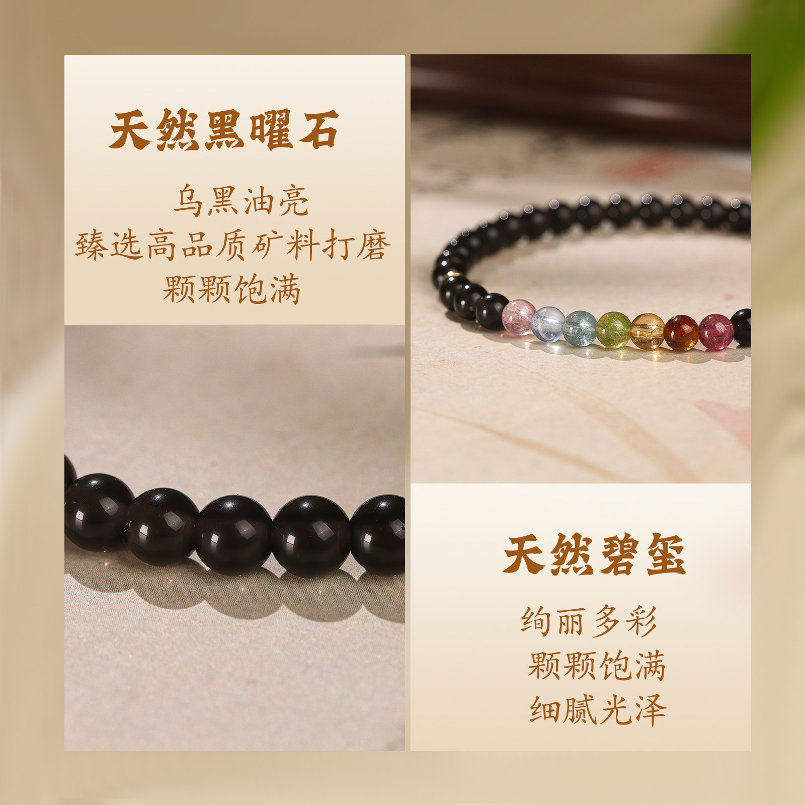 墨间彩天然黑曜石碧玺手串女款正品巨好看的手链轻奢小众精致爆款