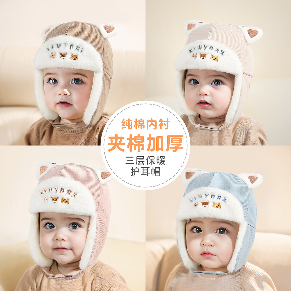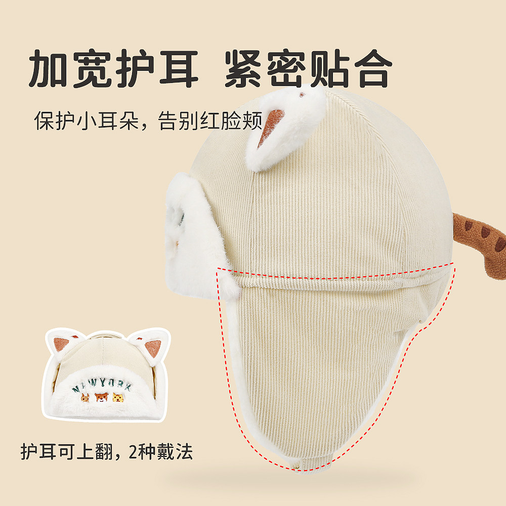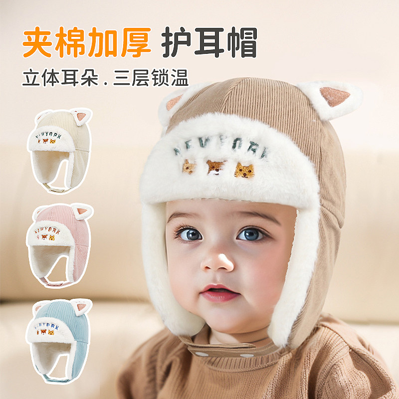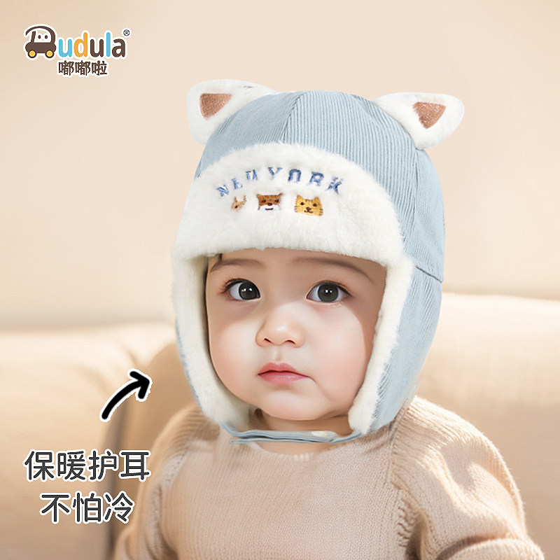 嘟嘟啦宝宝护耳保暖帽子冬季男女小孩防风防寒护耳雷锋帽儿童厚帽