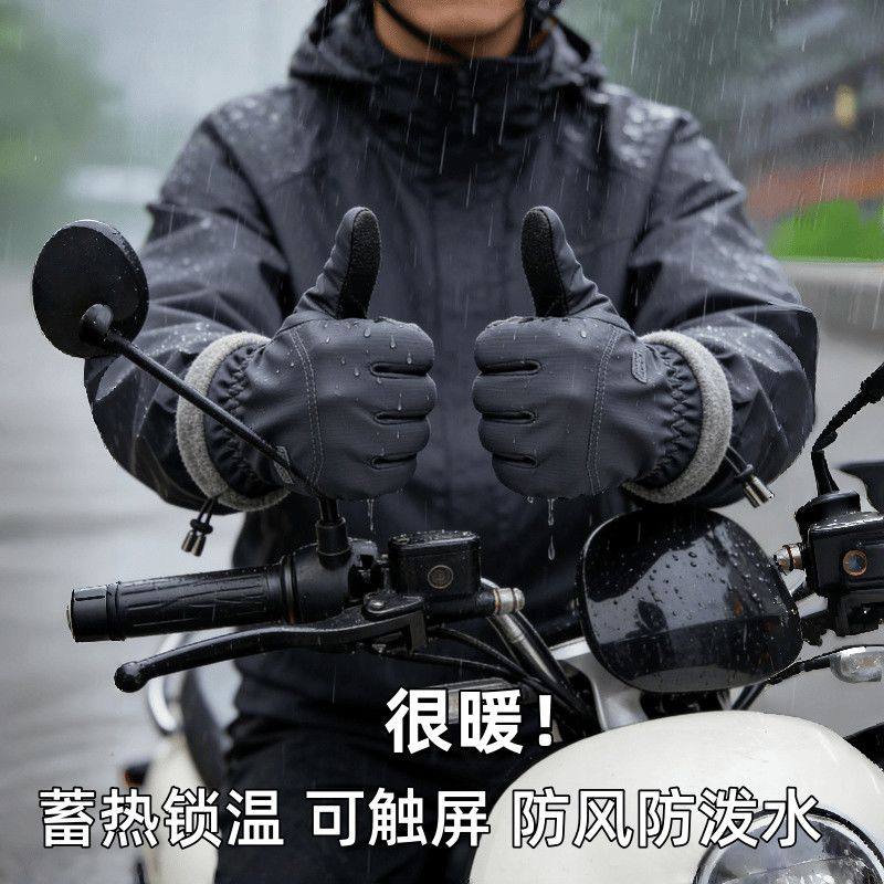 冬季保暖加厚骑行滑雪手套触屏摩托车加绒防水防风寒防滑户外防雨