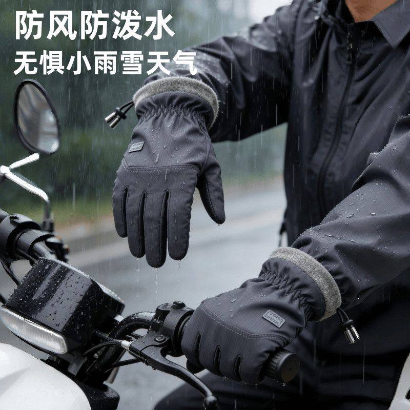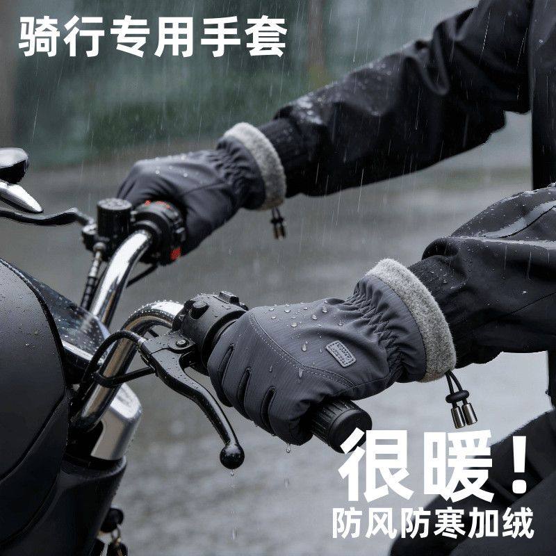手套女秋冬季防风加绒保暖触屏防水防寒户外电动车骑行用防滑男款