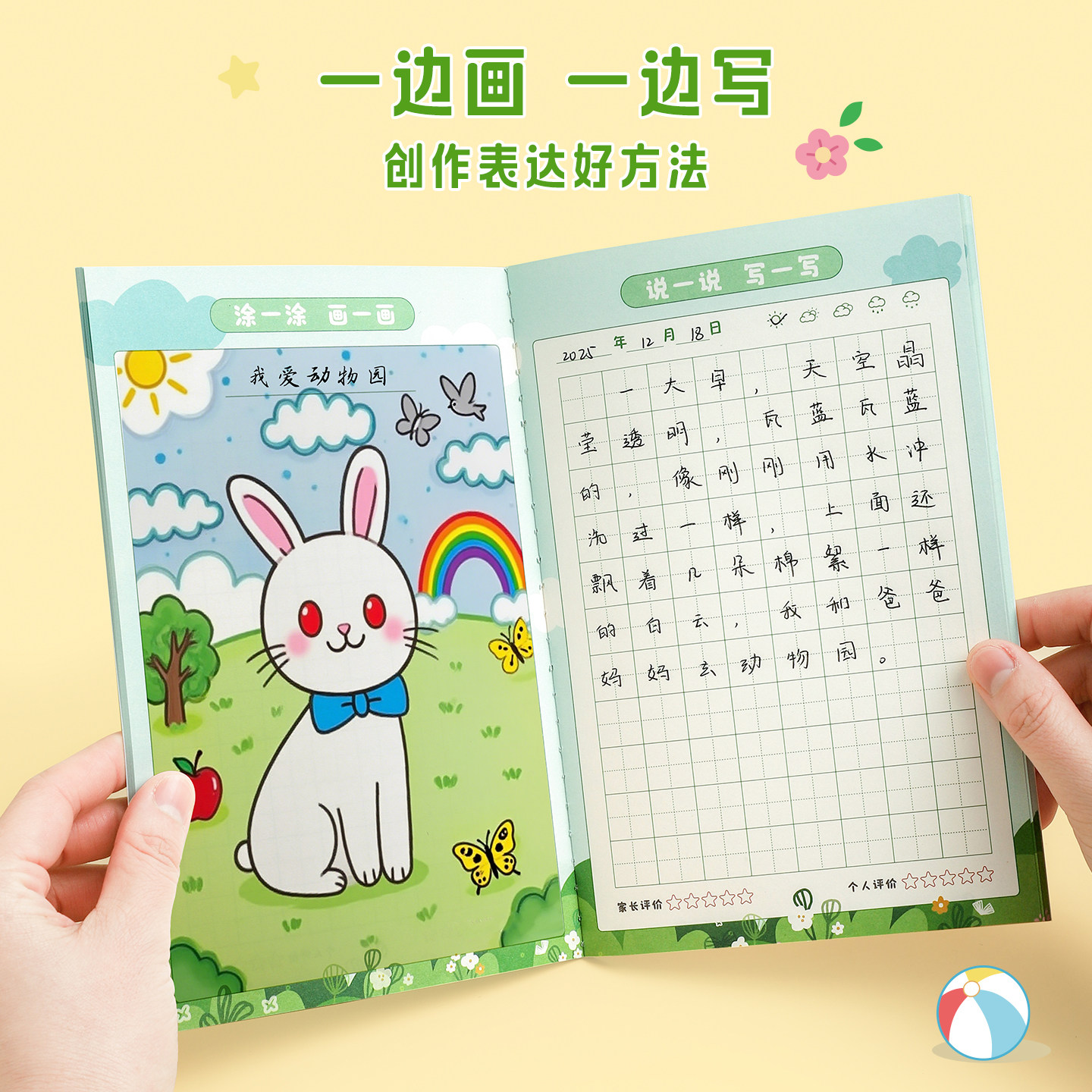 绘画日记本小学生一年级二年级一天一画幼儿园儿童看图写话本子加厚拼音田字格周记本少儿涂鸦画图写话作文本