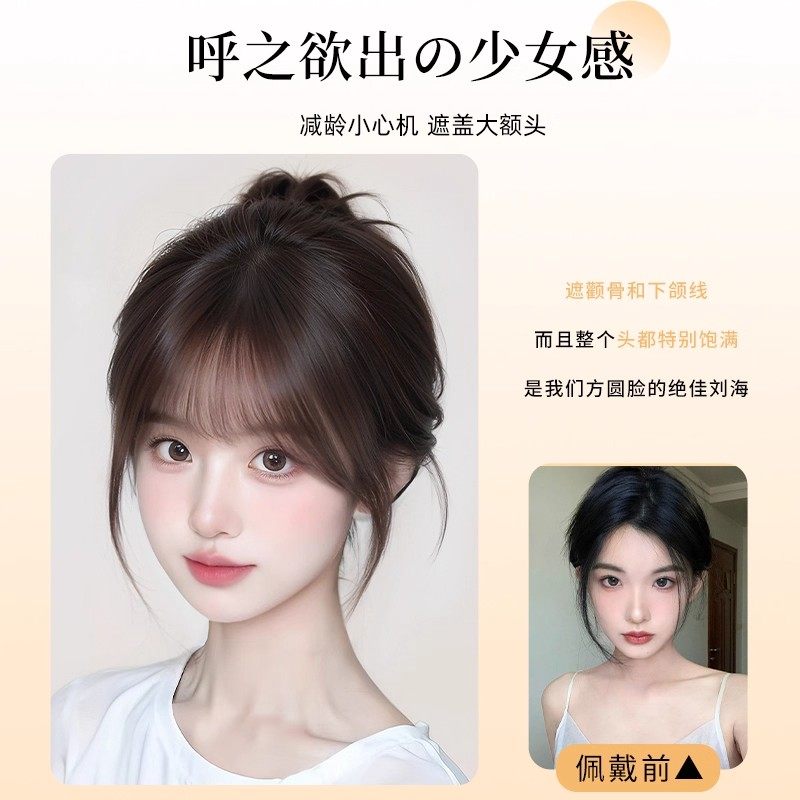 全真发空气刘海假发女片头顶自然前额法式假刘海蓬松轻薄款齐刘海