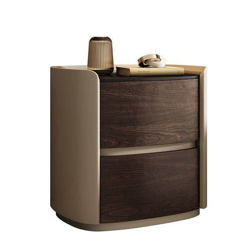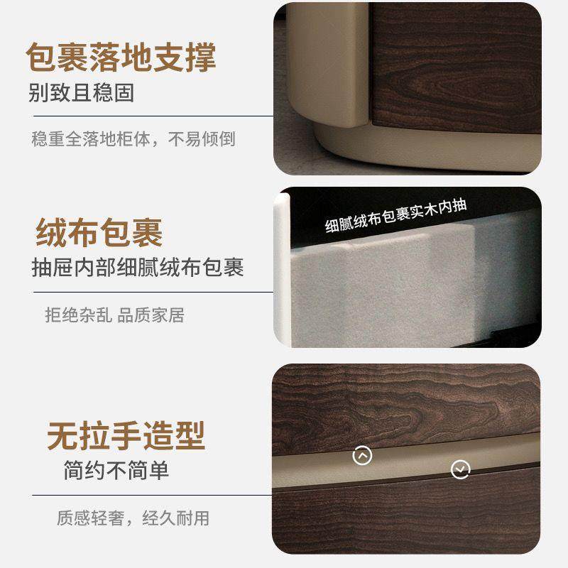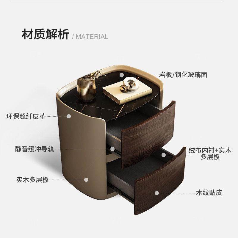 意式极简设计师岩板床头柜实木轻奢皮艺床边柜诧寂风简约现代边几