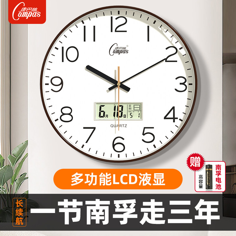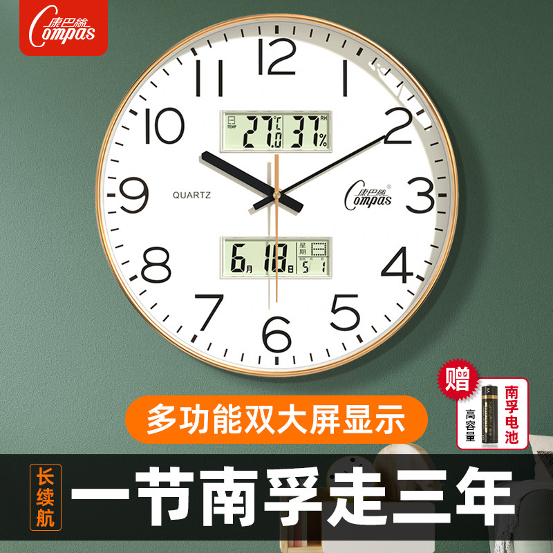 康巴丝挂钟客厅钟表温湿度简约静音扫描长续航家用时尚卧室石英钟