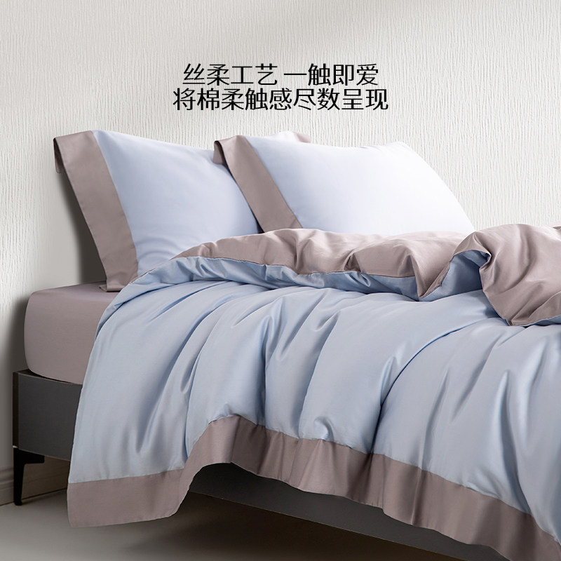 60支简约纯色被套单件纯棉100全棉单人150x200x230双人被罩四件套
