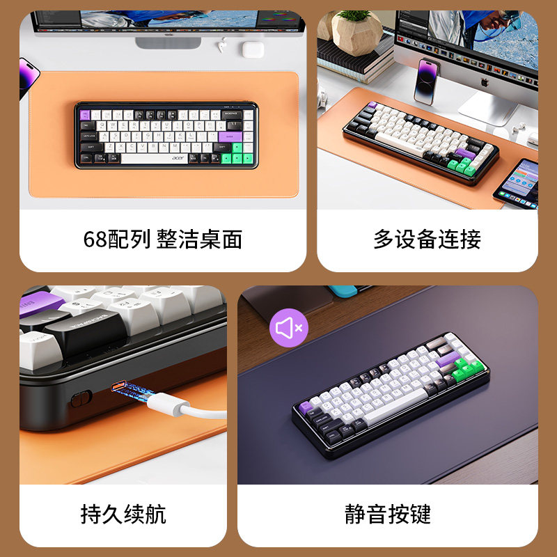 宏碁无线蓝牙有线三模键盘鼠标套装可充电静音电脑笔记本Mac通用