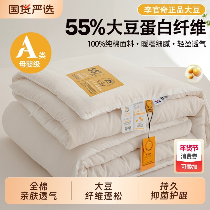 正品李官奇A类全棉55%大豆纤维被春秋被冬被单空调被芯子母被纯棉