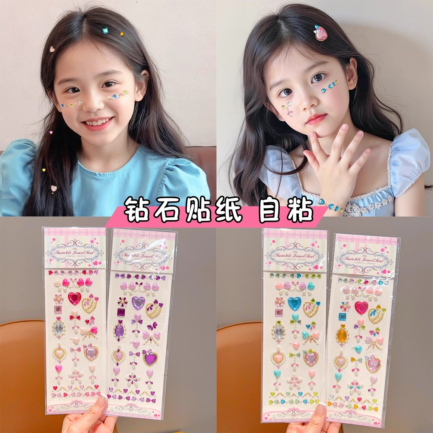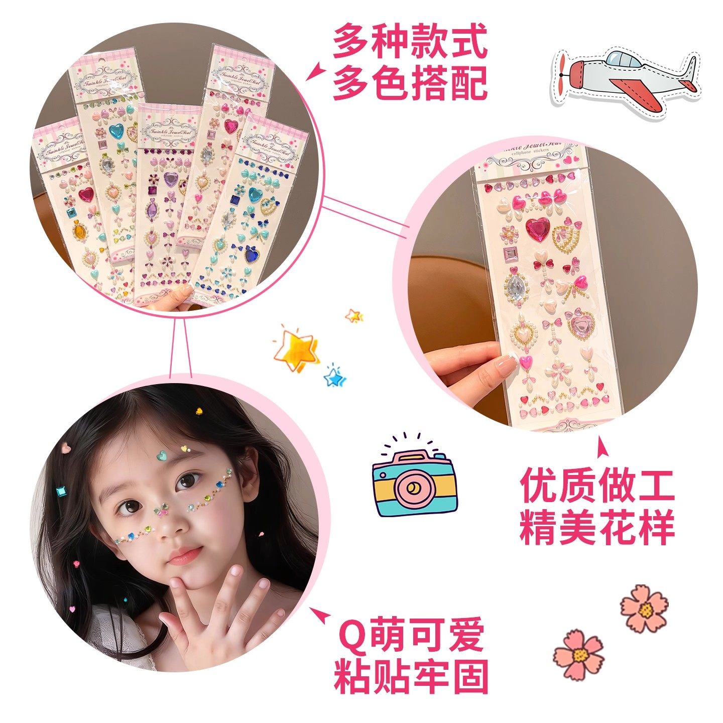 创意宝石贴纸女孩3d立体浮雕爱心水晶钻石脸贴儿童手帐素材装饰小图案可爱小鼻嘎粘贴玩具贴画五毒可洗不留胶