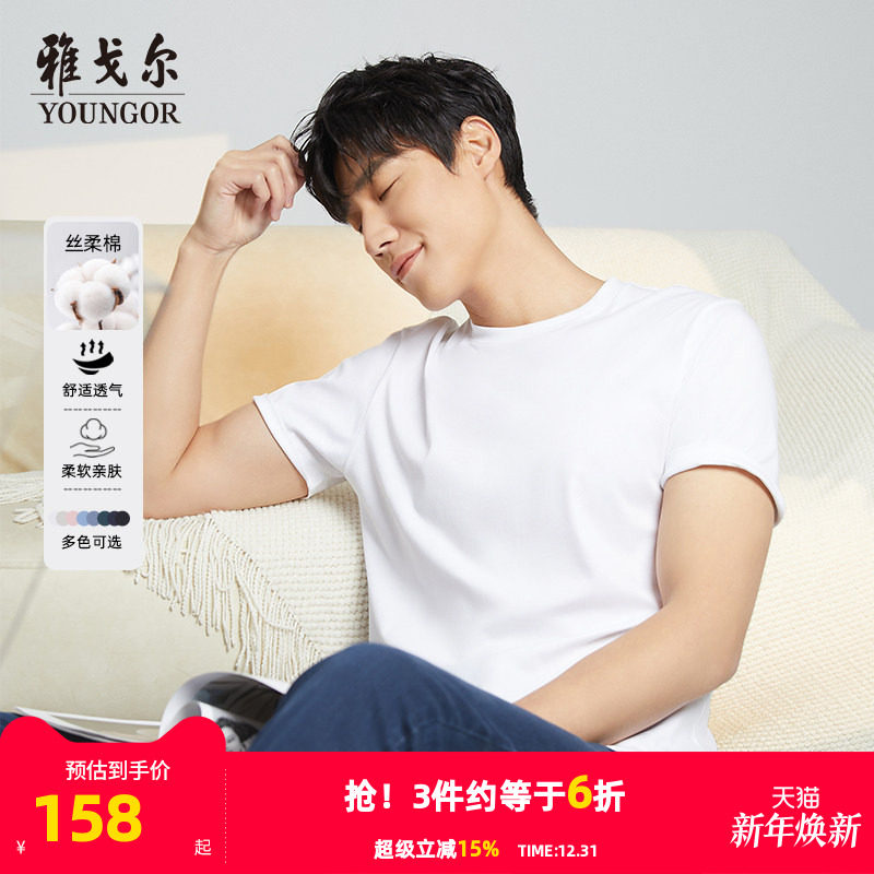 【丝柔棉】雅戈尔夏季男士凉感短袖T恤休闲宽松圆领纯色打底上衣
