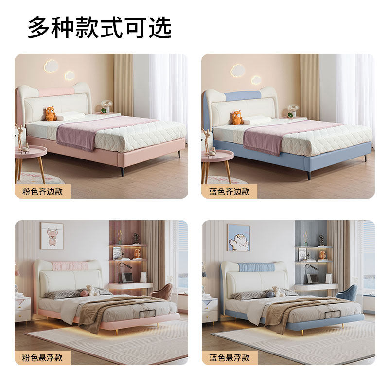 慕思儿童床现代简约实木床环保硅胶皮女孩床1.5m女童房慕斯家具