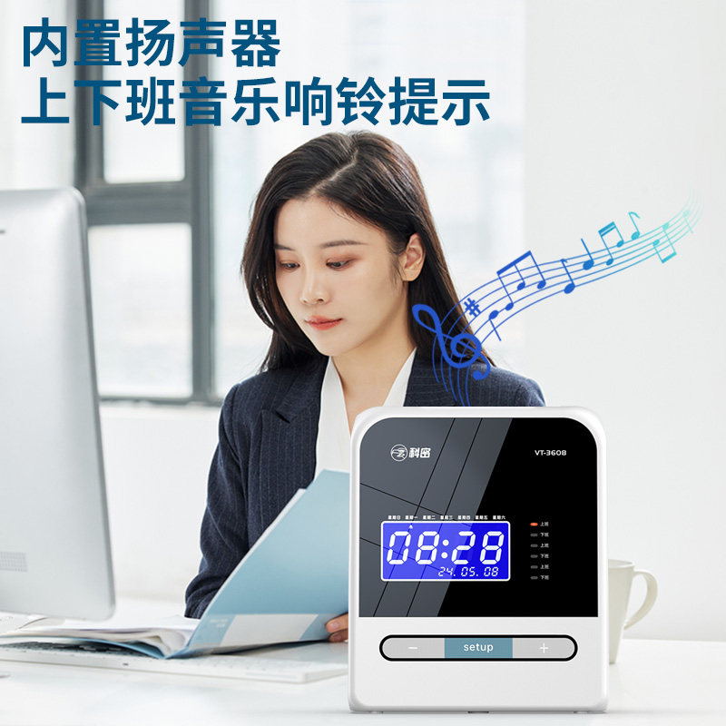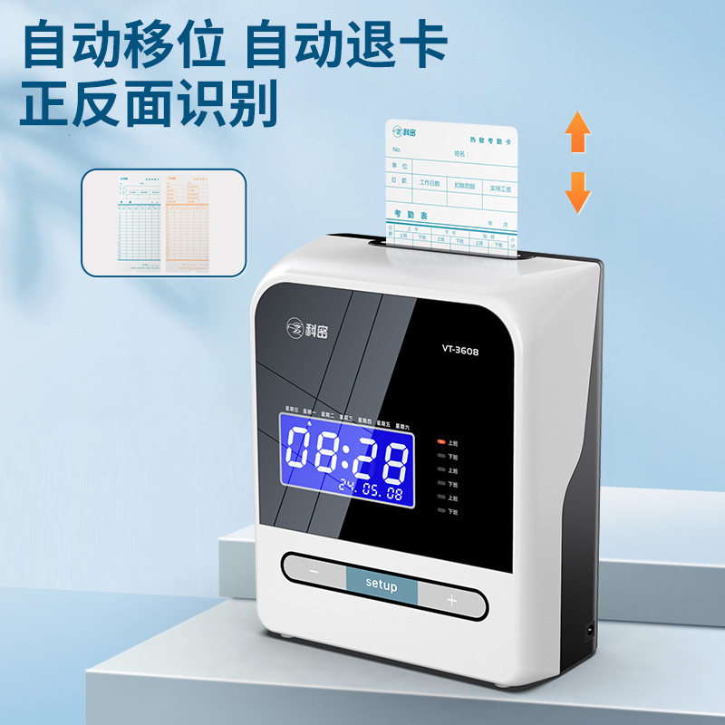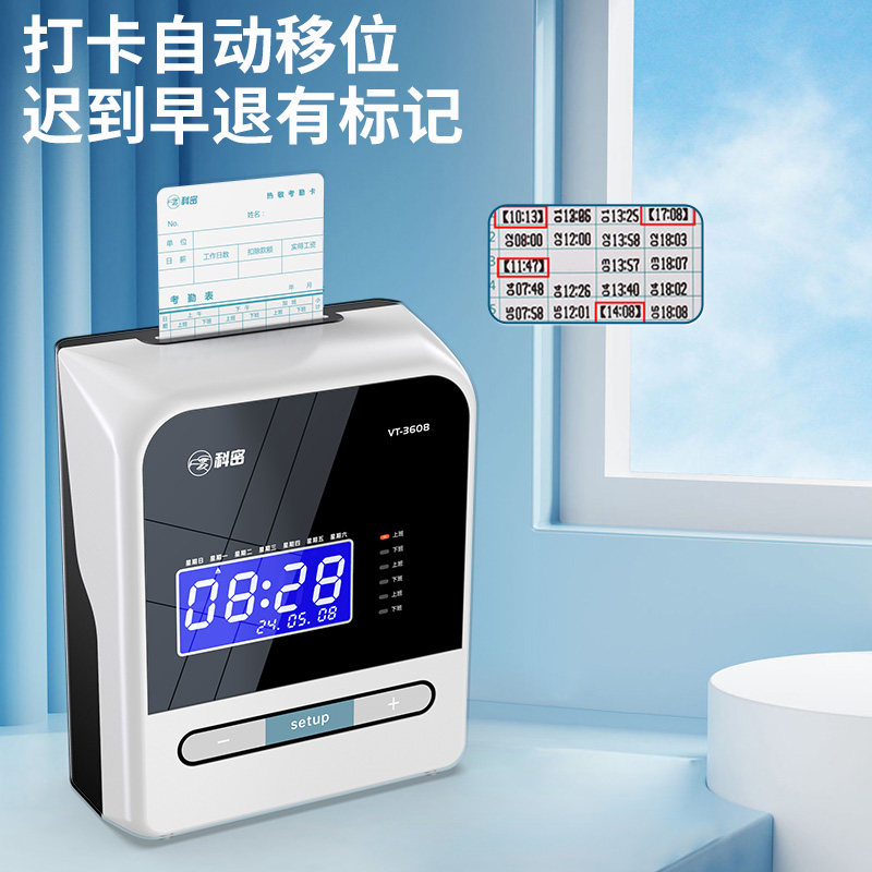 科密VT-3608热敏考勤机卡钟卡纸打卡机液晶员工上班微电脑纸质插卡老式签到机纸卡工地工厂出勤智能免换色带