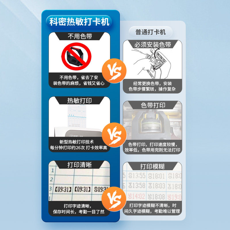 科密热敏考勤机液晶大屏永久免换色带