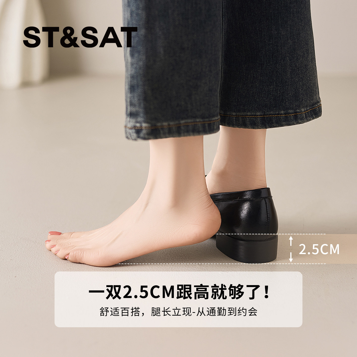 星期六乐福鞋子女2026新款春季英伦风黑色真皮圆头巨舒适平底单鞋