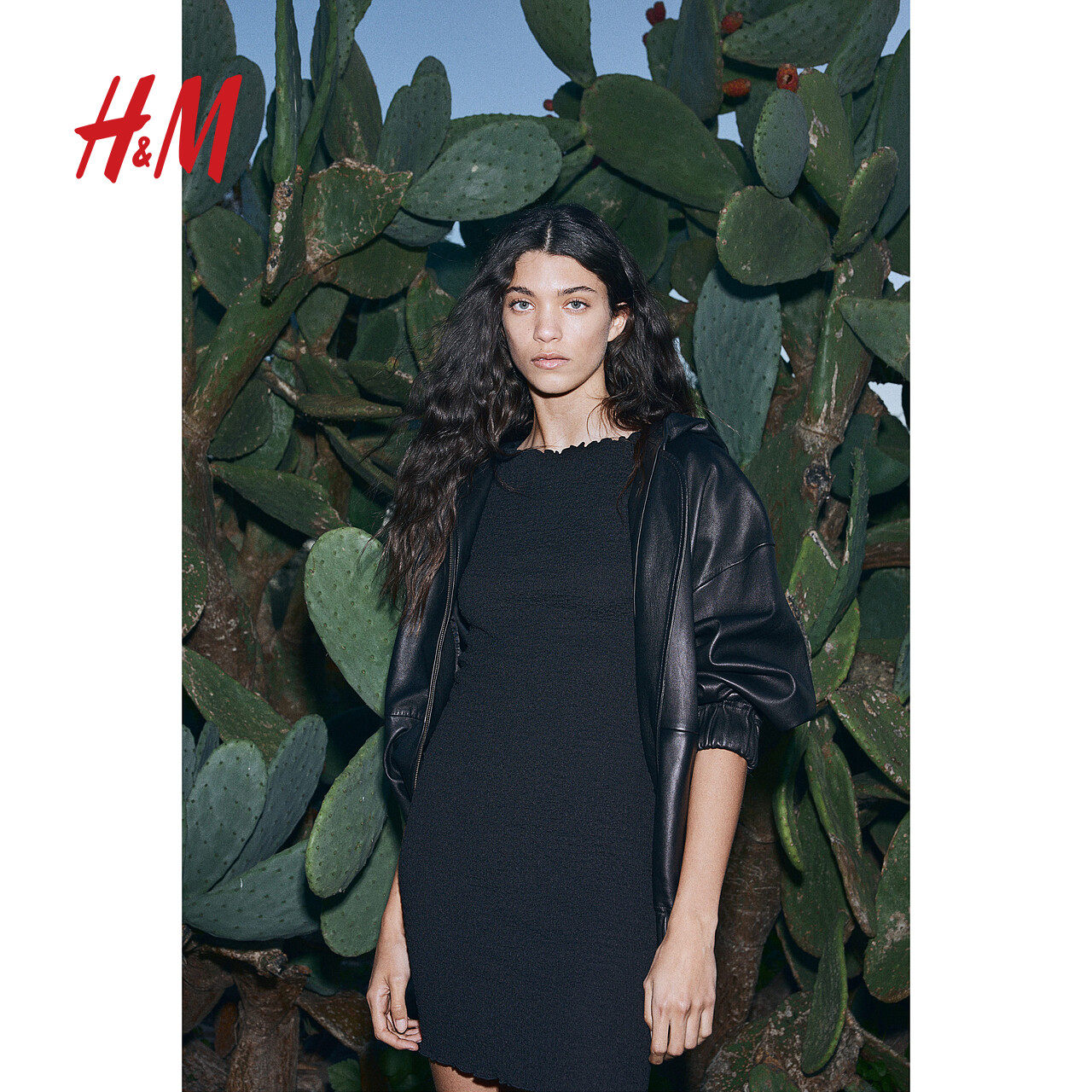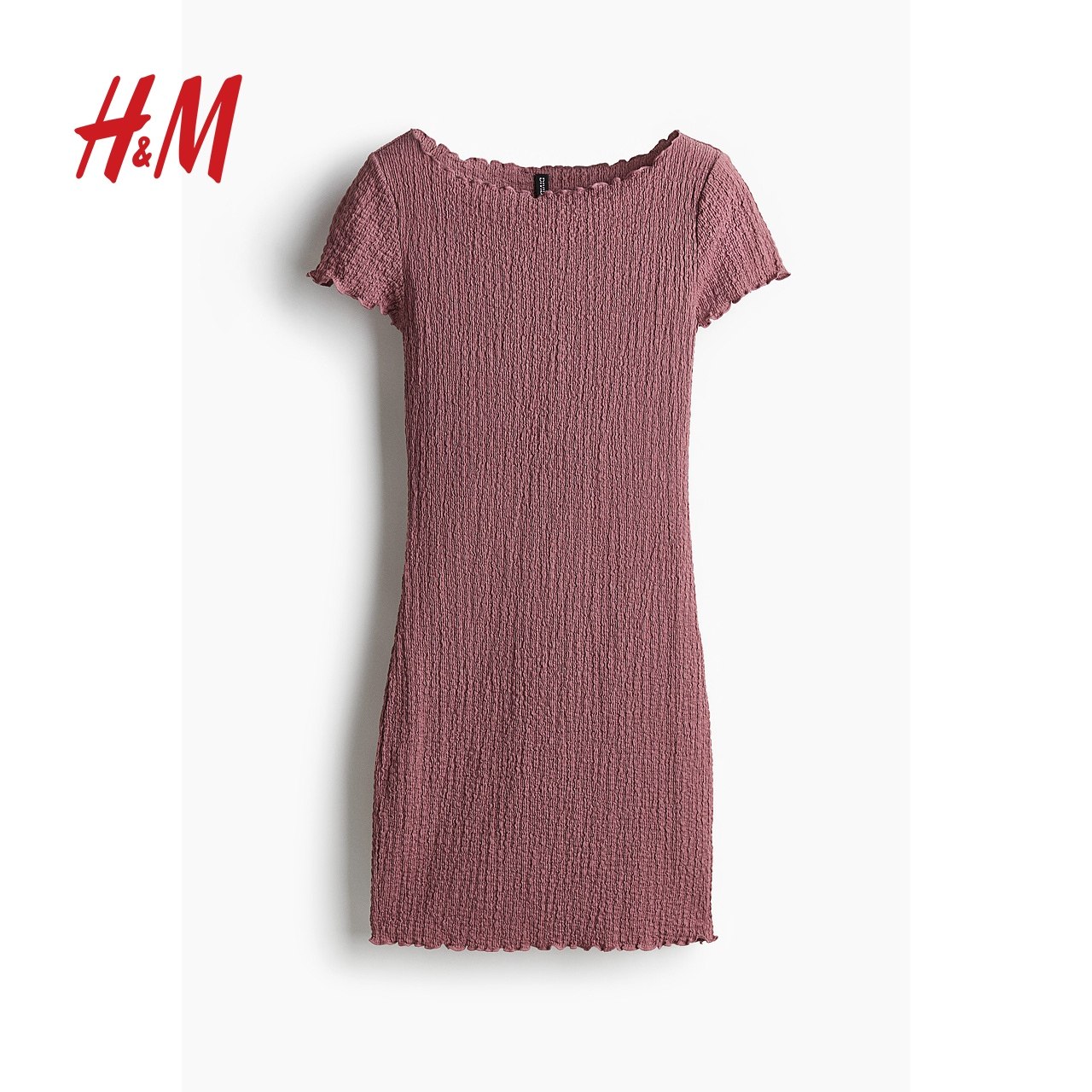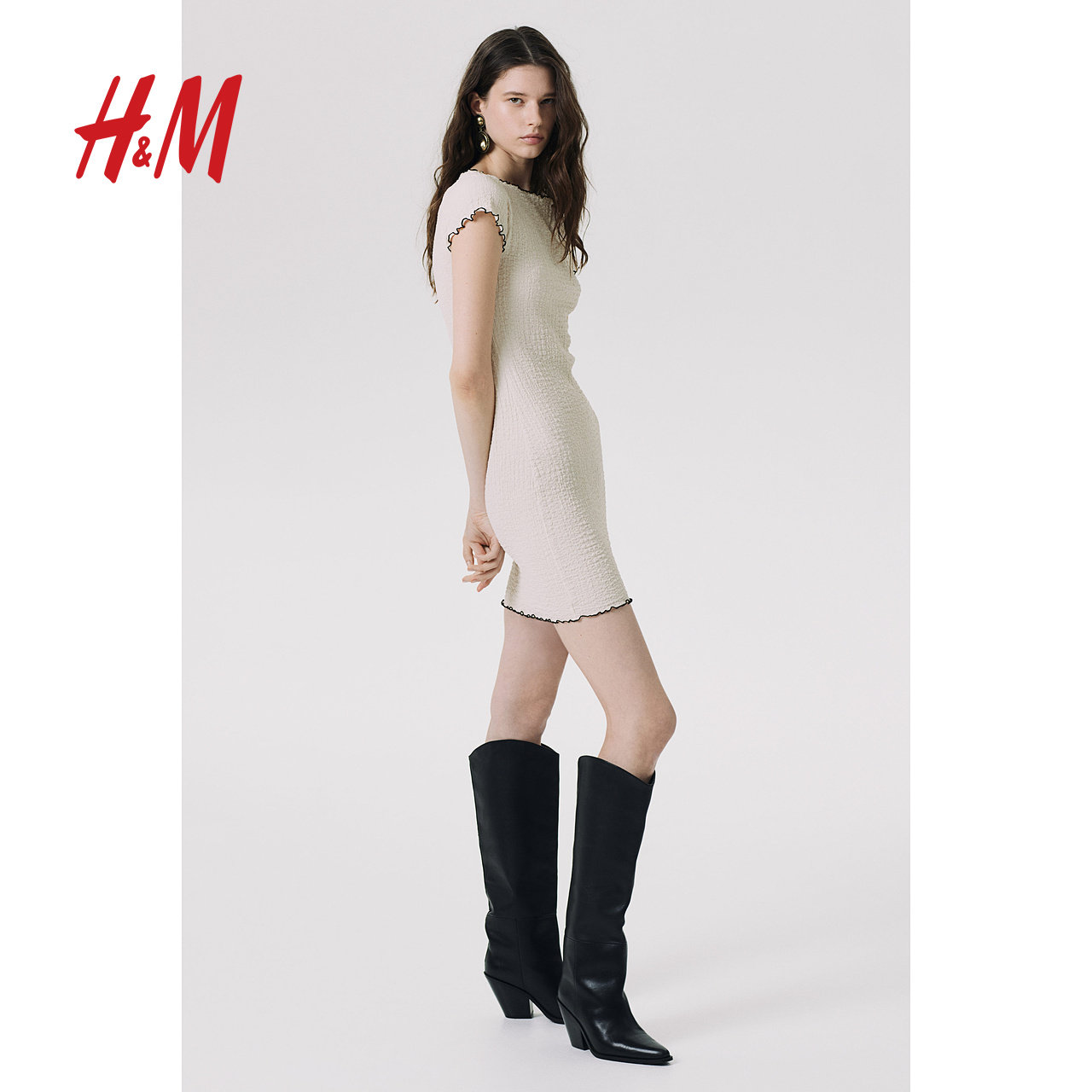 HM女装连衣裙2025秋季新款锁边设计皱感优雅修身显瘦短裙1269445