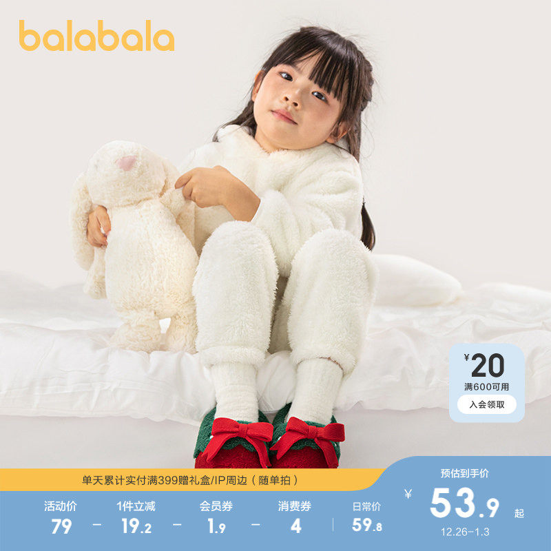 巴拉巴拉儿童秋冬棉拖鞋圣诞配色蝴蝶结男童女童室内红色暖家居鞋