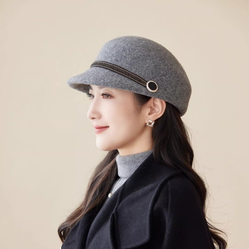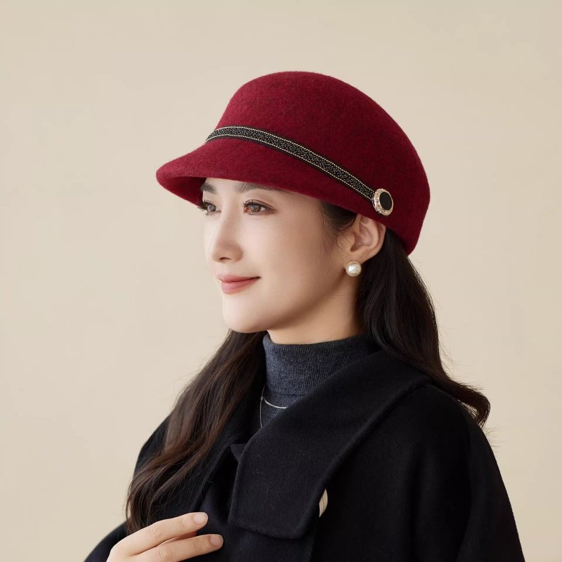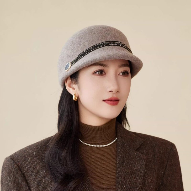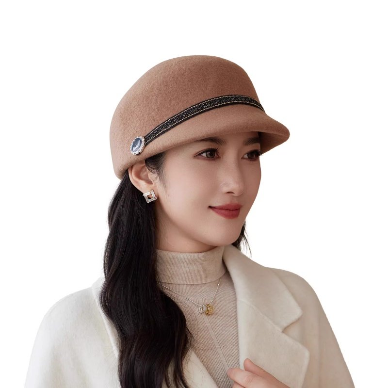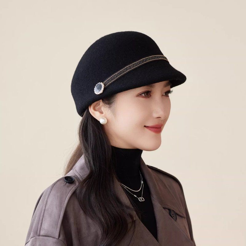 新款帽子女羊毛秋冬季马术帽户外出游时尚百搭显脸小赫本风贝雷帽