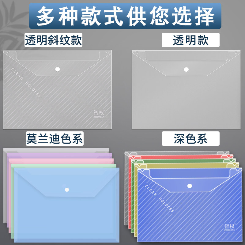 加厚透明文件袋A4斜纹按扣袋大容量防水资料档案袋办公文件收纳袋考试试卷袋学生用分类