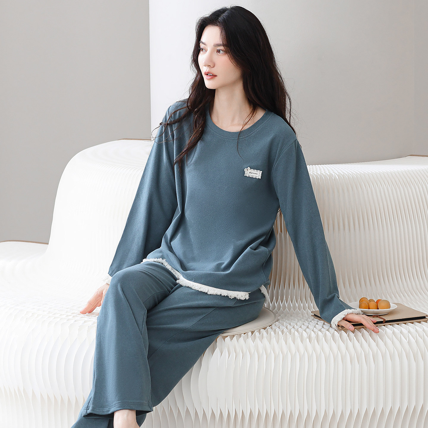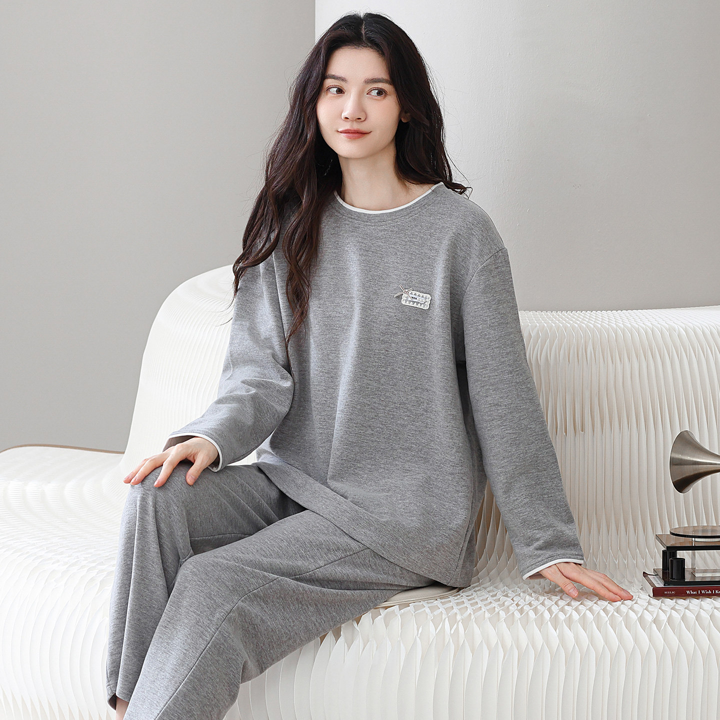安比斯情侣睡衣舒适纯棉秋季女长袖男女同款休闲家居服套装可出门