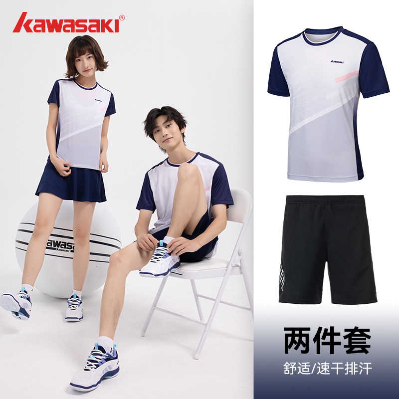 川崎羽毛球服套装男女夏运动套装羽毛球速干短袖T恤训练队服定制