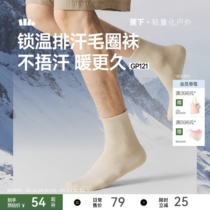 蕉下保暖中筒袜秋冬特护男女同款舒适缓震吸汗抗菌防臭加厚袜子