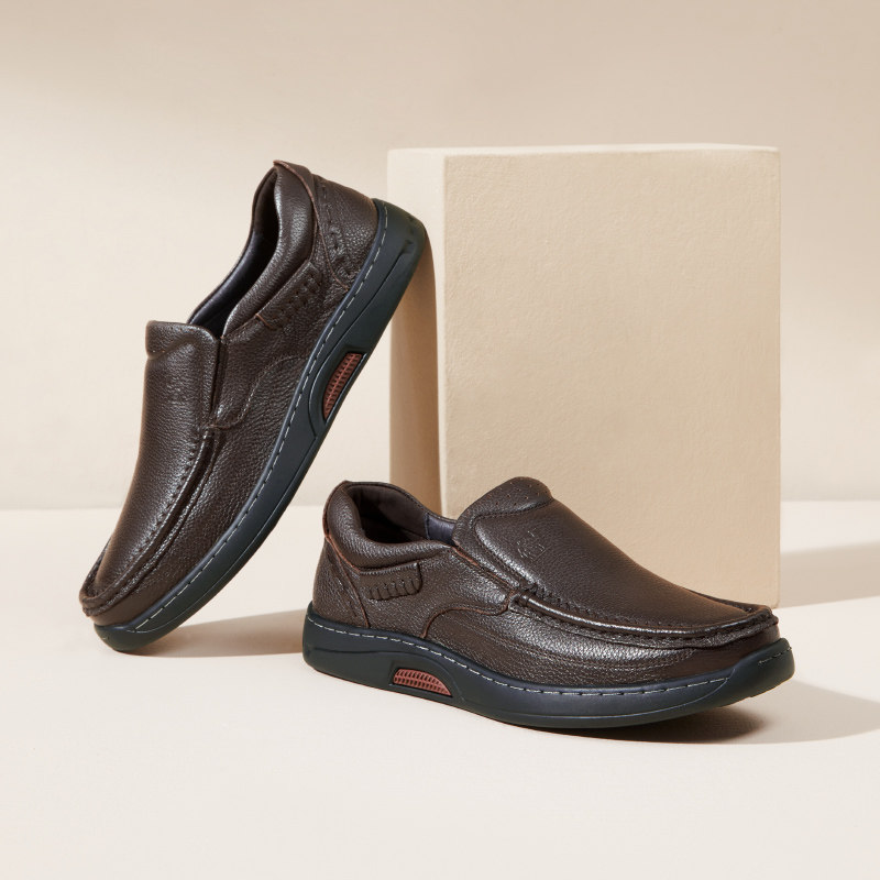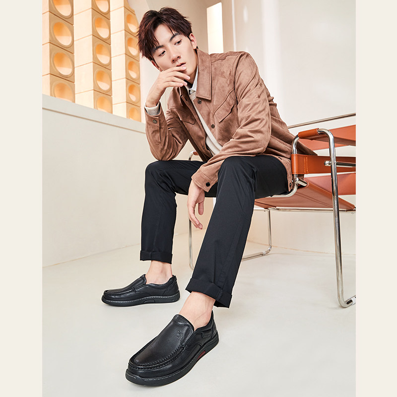 奥康官方男鞋春秋季真皮商务休闲皮鞋时尚套脚平底脚蹬舒适爸爸鞋